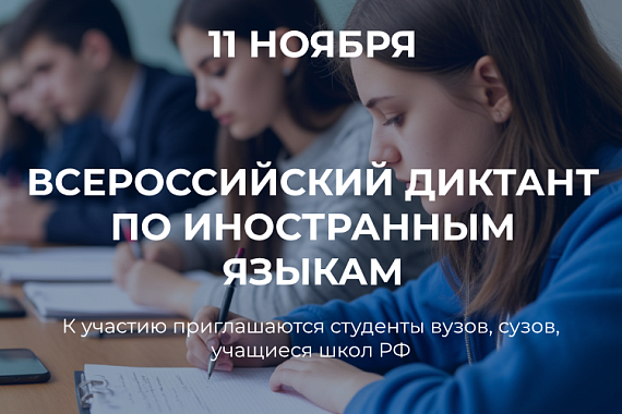Мурманский арктический университет совместно с Казанским федеральным университетом приглашает всех желающих принять участие в юбилейном X Всероссийском диктанте по иностранным языкам. Мероприятие пройдет одновременно в более чем 500 образовательных организациях России и зарубежья.