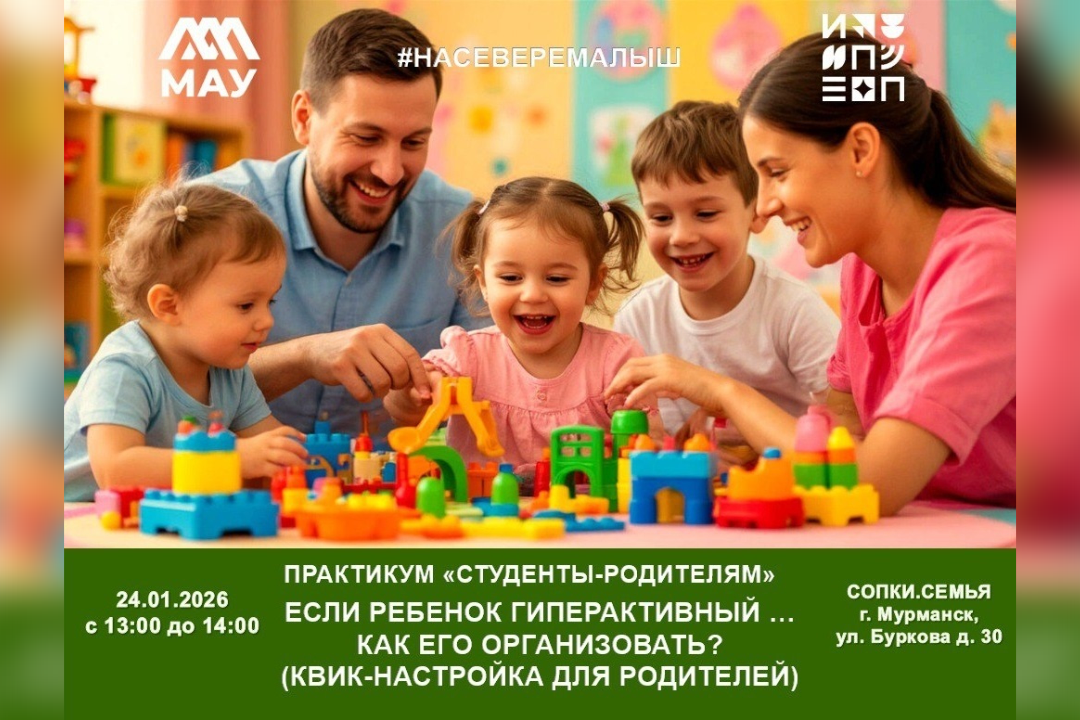 Студенты Мурманского арктического университета приглашают родителей детей дошкольного возраста на практическую встречу-настройку. Вместе мы разберём, что такое гиперактивность, как найти к ней правильный подход и какие простые приёмы помогут организовать день ребёнка без стресса для всей семьи.