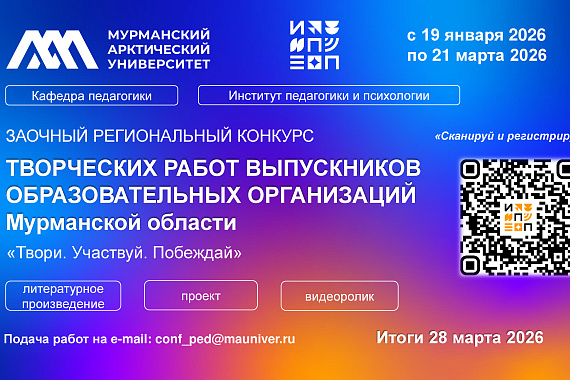 Кафедра педагогики Института педагогики и психологии МАУ приглашает выпускников школ и организаций СПО Мурманской области принять участие в творческом конкурсе. Это возможность поразмышлять о будущем образования, выразить своё видение школы и учителя через литературу, проекты или видео, а также сделать первый шаг к педагогической профессии.