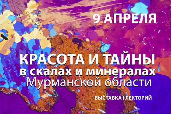 9 апреля в 13:30 в корпусе Л Мурманского арктического университета (МАУ) состоится открытие лекция и открытие выставки «Красота и тайны в скалах и минералах Мурманской области». Посетители смогут увидеть уникальные микрофотографии горных пород и минералов, которые раскрывают невидимый глазу «микрокосмос», скрытый в камнях, лежащих у нас под ногами.
