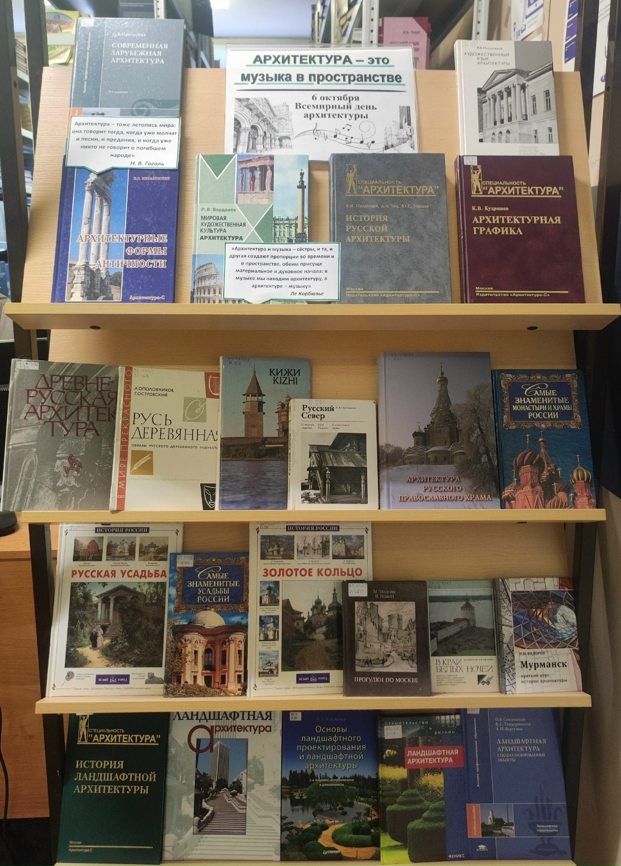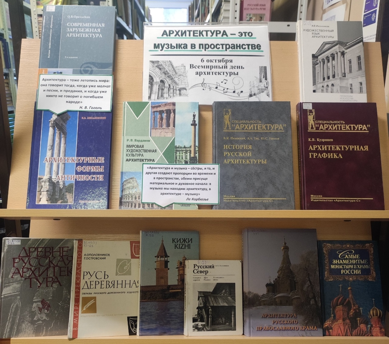 К этой дате Библиотека МАУ подготовила книжную выставку «Архитектура — это музыка в пространстве».