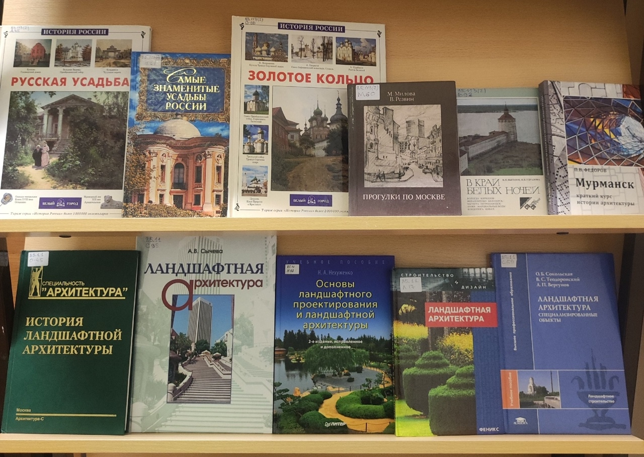 Издания, представленные на выставке, познакомят Вас с историей зарубежной и отечественной архитектуры, с самыми знаменитыми архитектурными сооружениями и историей их создания, часть выставки посвящена ландшафтной архитектуре, ее истории и азам ландшафтного дизайна.
