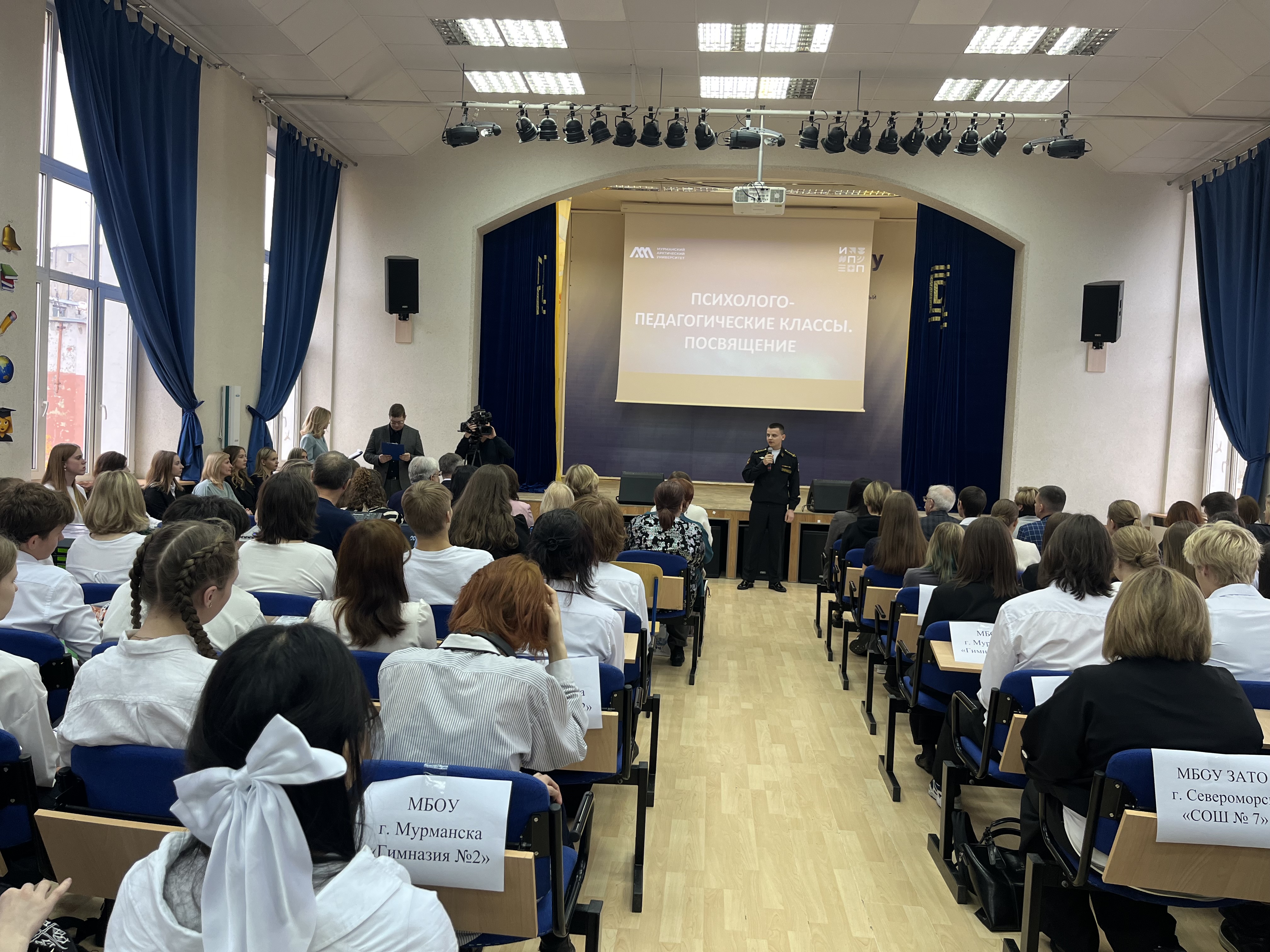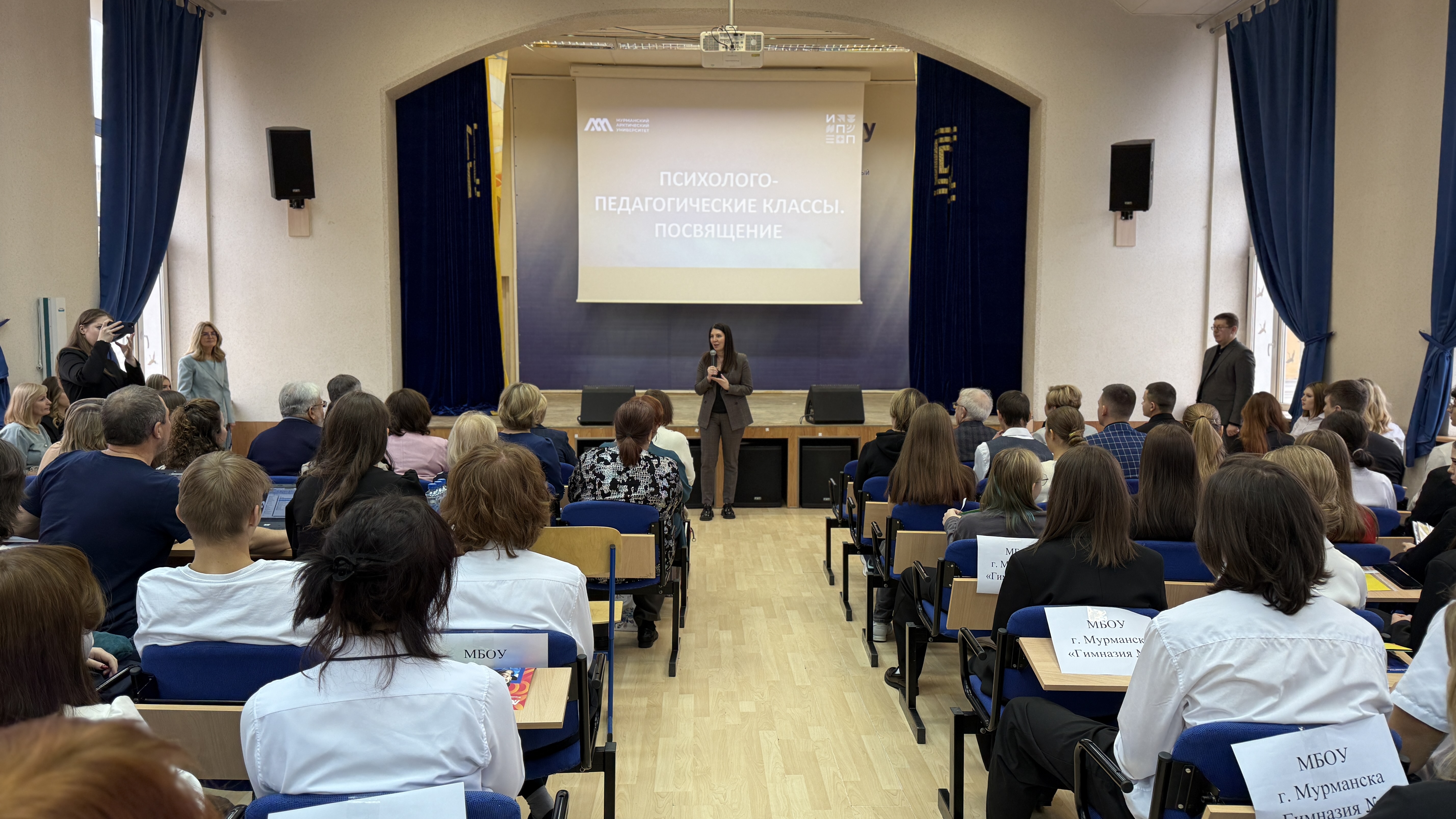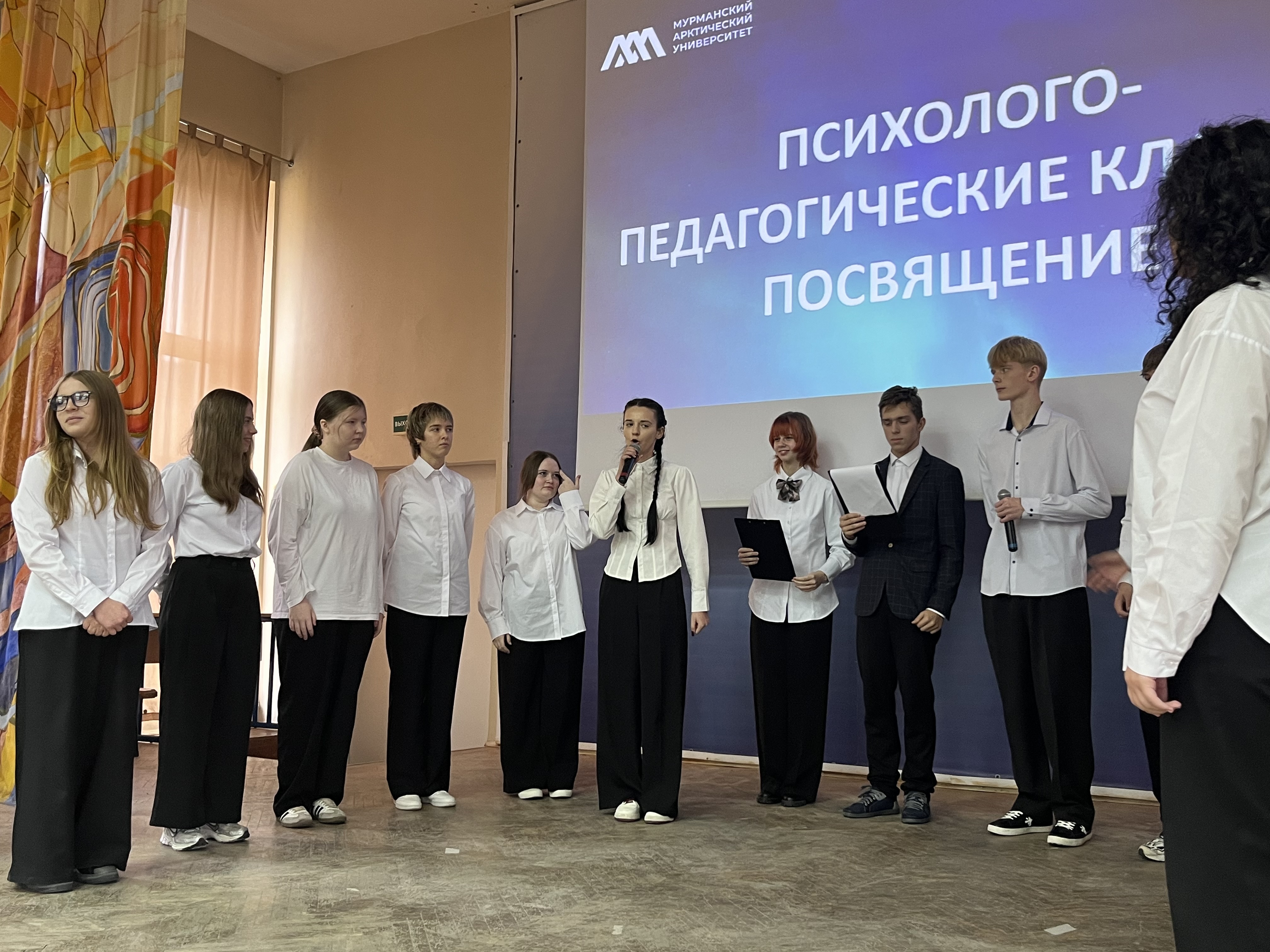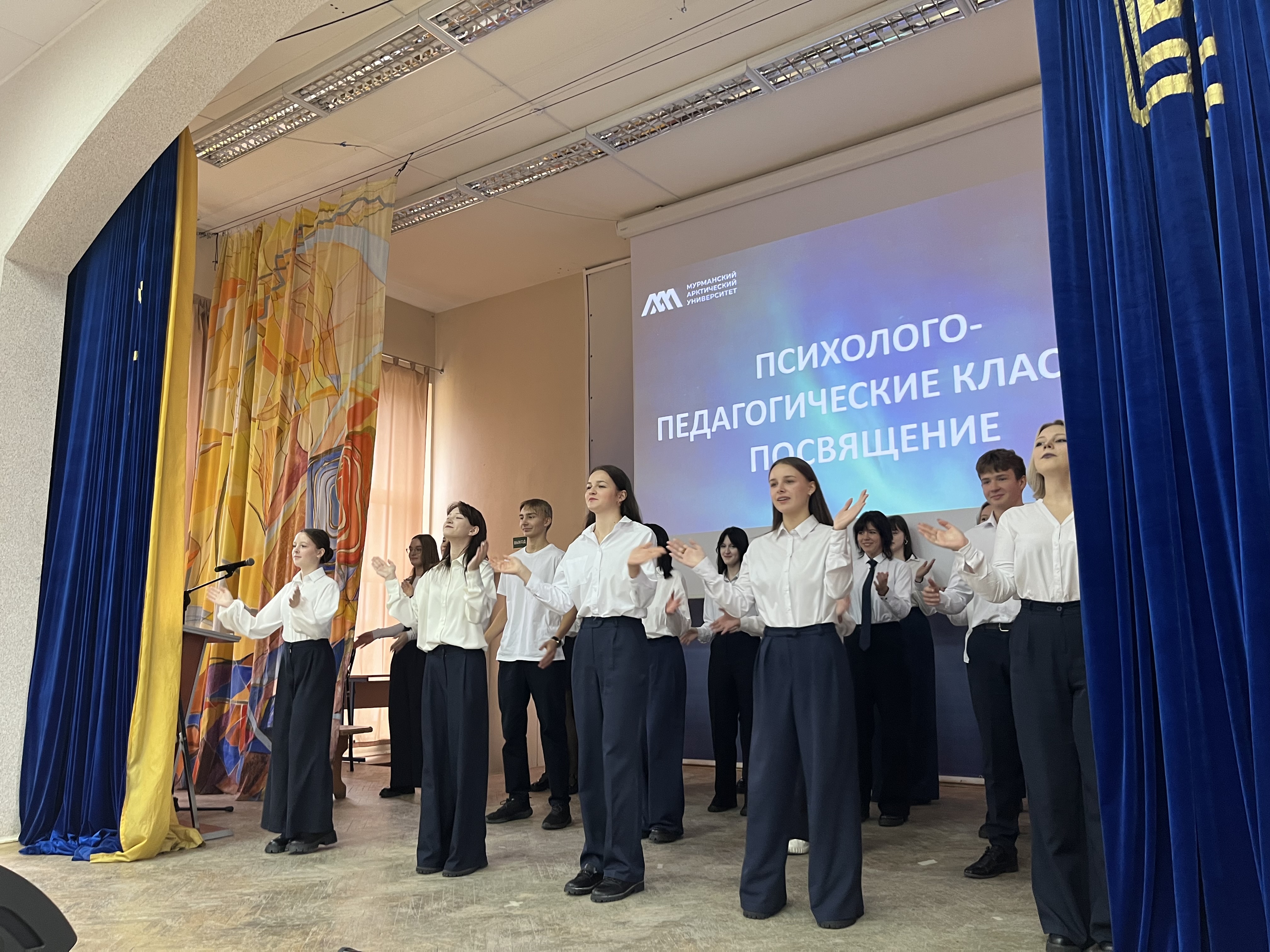 В Мурманском арктическом университете состоялось посвящение в психолого-педагогические классы. В актовом зале университета, на большом академическом празднике собрались школьники психолого-педагогических классов нашего региона, руководители и учителя образовательных организаций-партнеров МАУ: Гимназии № 2, 6, 9 г. Мурманска, СОШ № 4 г. Оленегорск, СОШ № 7 ЗАТО г. Североморск, СОШ № 1 им. М. А. Погодина г. Полярный, СОШ № 276 г. Гаджиево, Гимназия № 1 г. Полярные Зори, а также студенты, преподаватели университета и кандидаты в состав Молодежного правительства Мурманской области.