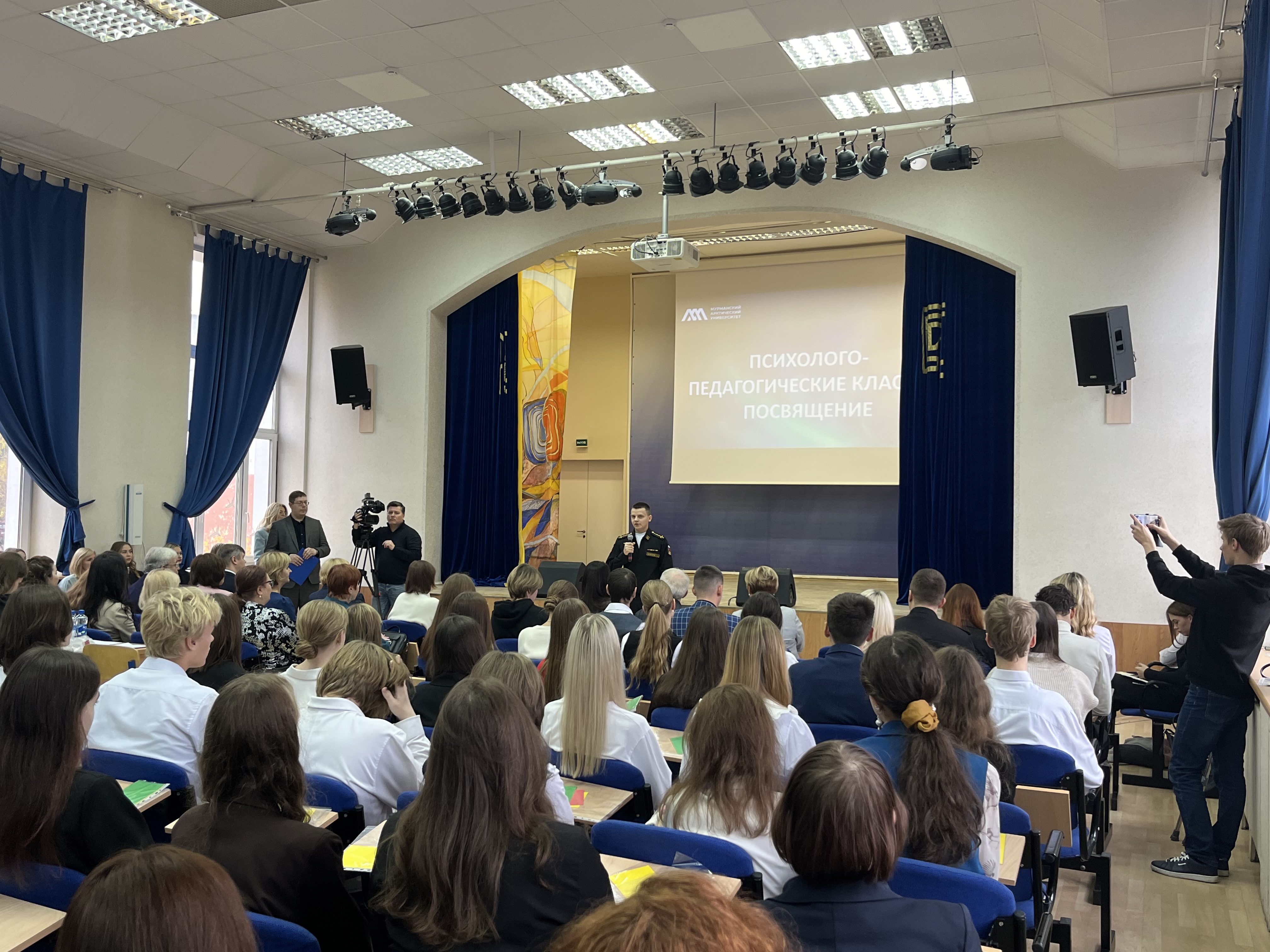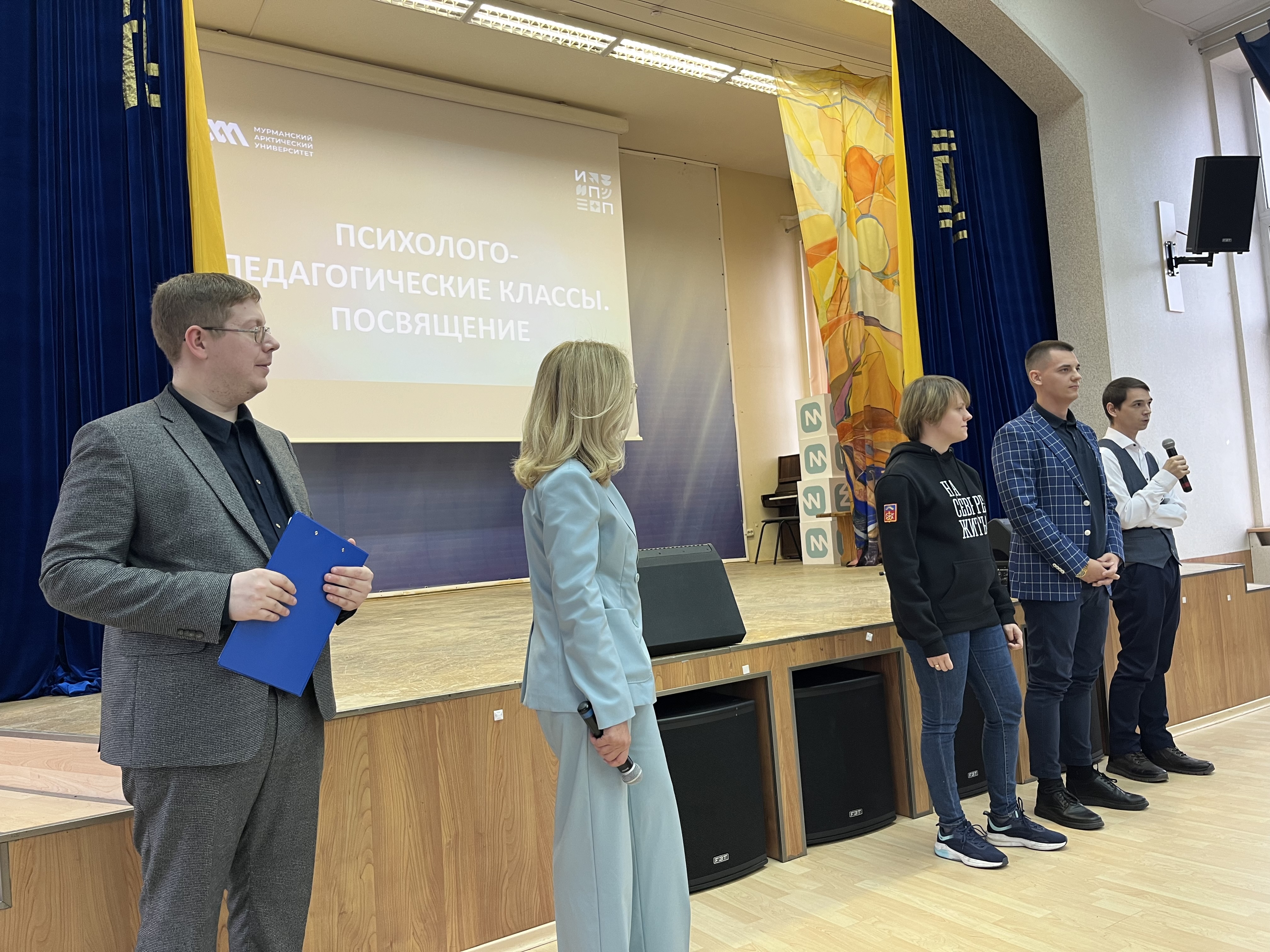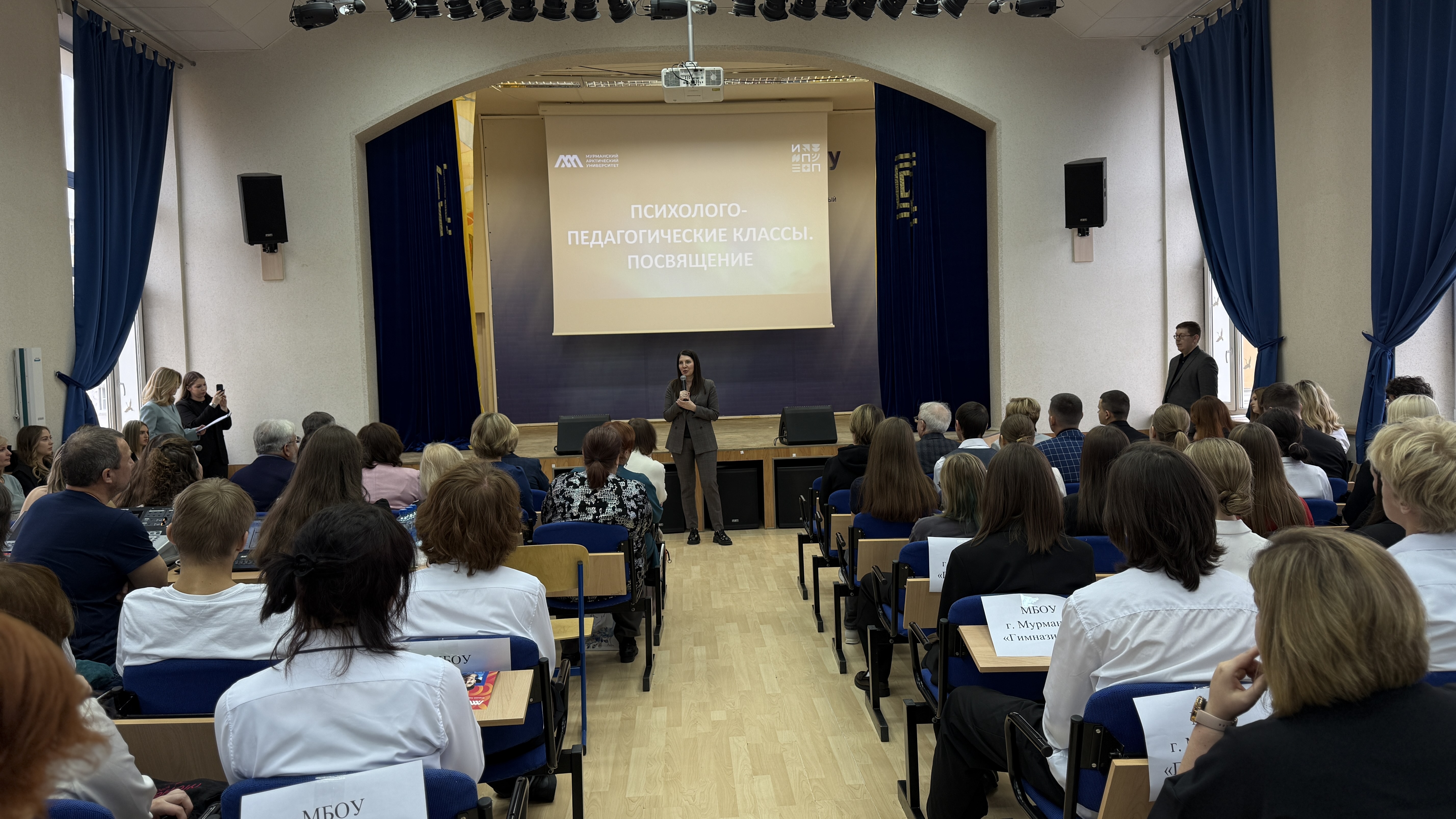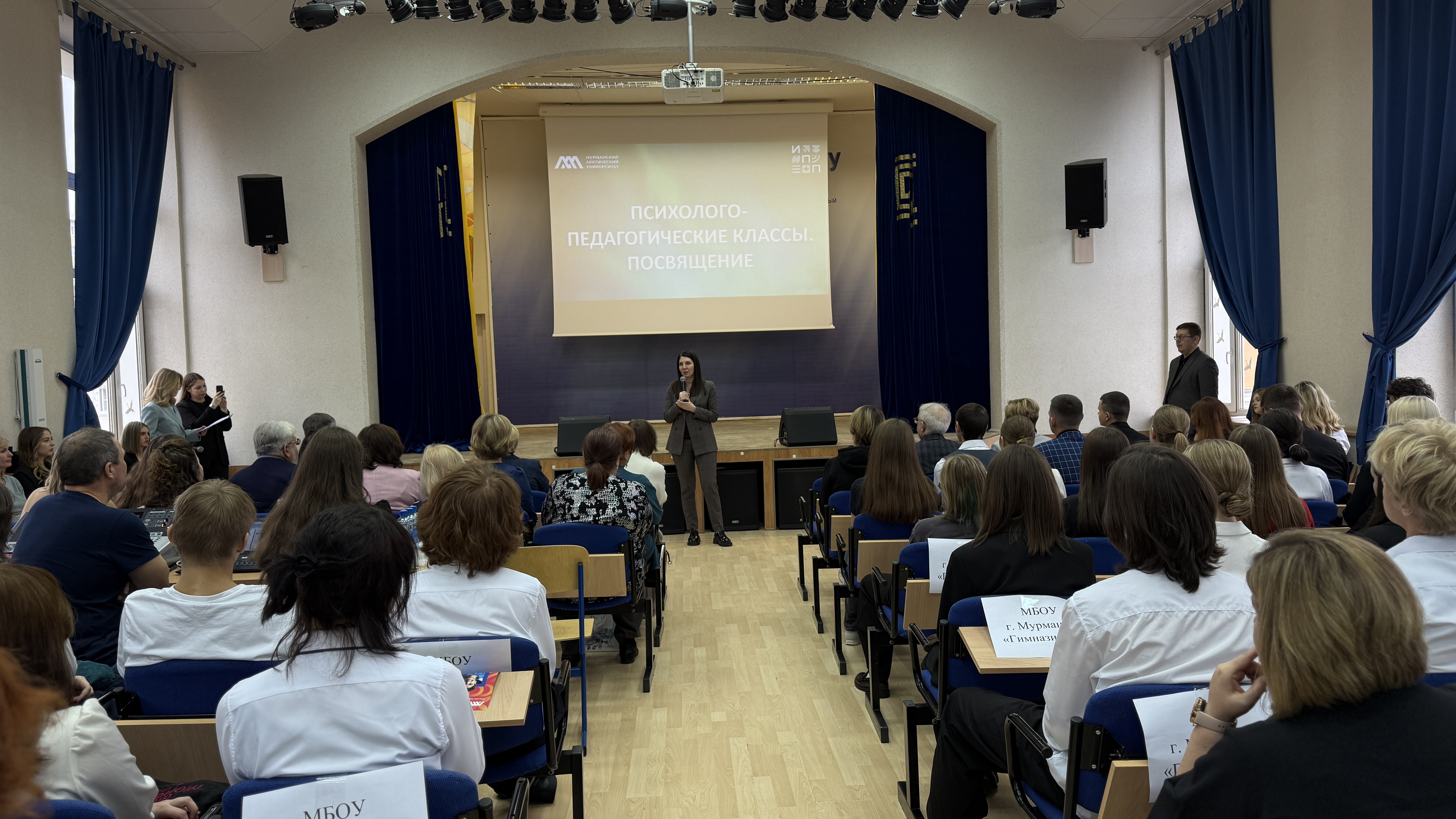 В Мурманском арктическом университете состоялось посвящение в психолого-педагогические классы. В актовом зале университета, на большом академическом празднике собрались школьники психолого-педагогических классов нашего региона, руководители и учителя образовательных организаций-партнеров МАУ: Гимназии № 2, 6, 9 г. Мурманска, СОШ № 4 г. Оленегорск, СОШ № 7 ЗАТО г. Североморск, СОШ № 1 им. М. А. Погодина г. Полярный, СОШ № 276 г. Гаджиево, Гимназия № 1 г. Полярные Зори, а также студенты, преподаватели университета и кандидаты в состав Молодежного правительства Мурманской области.