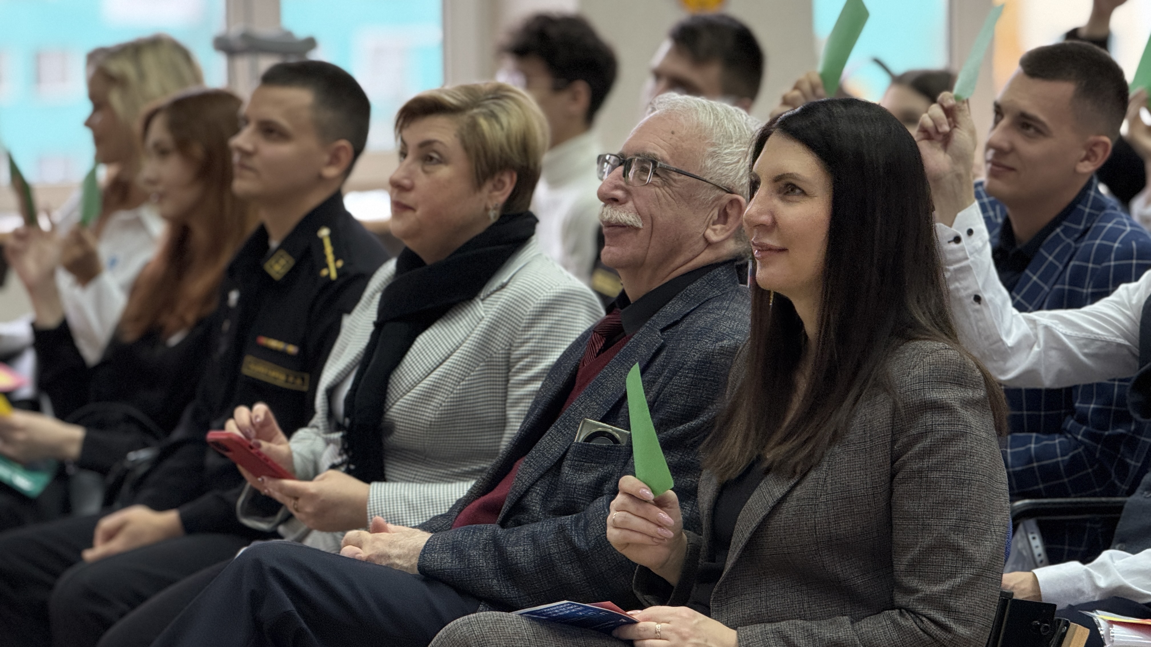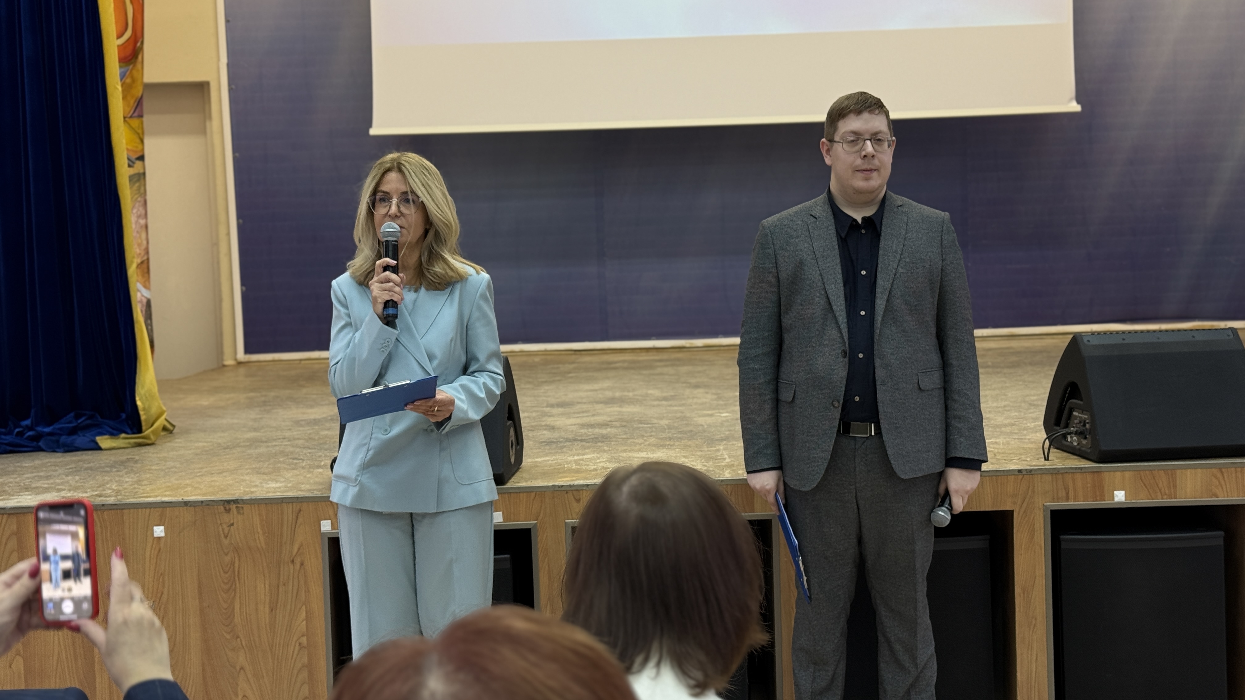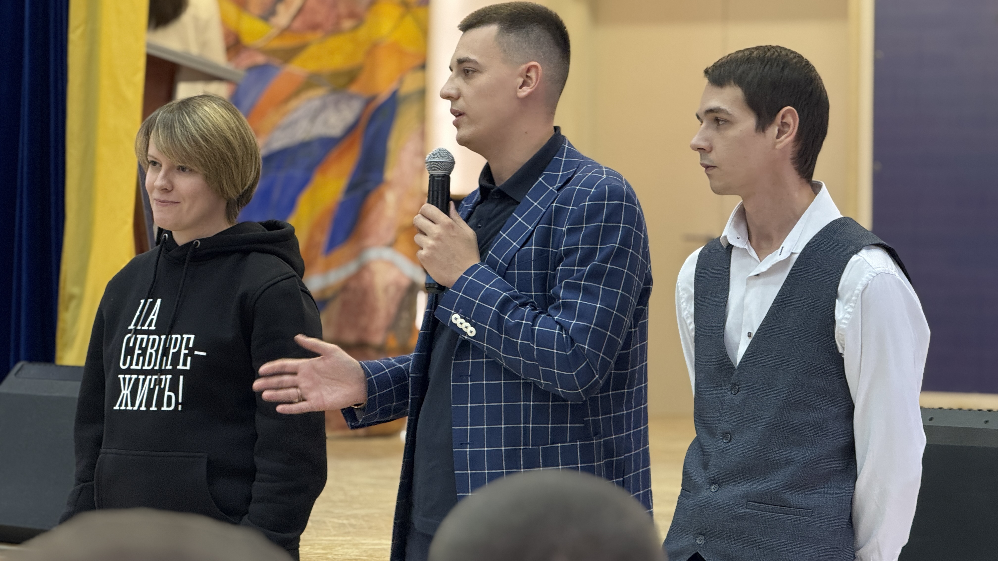 Татьяна Кузьмичева и Артем Пунанцев, доцент кафедры педагогики предложили участникам посвящения интерактивную квик-настройку — экспресс-опрос о педагогике и психологии в Арктике.