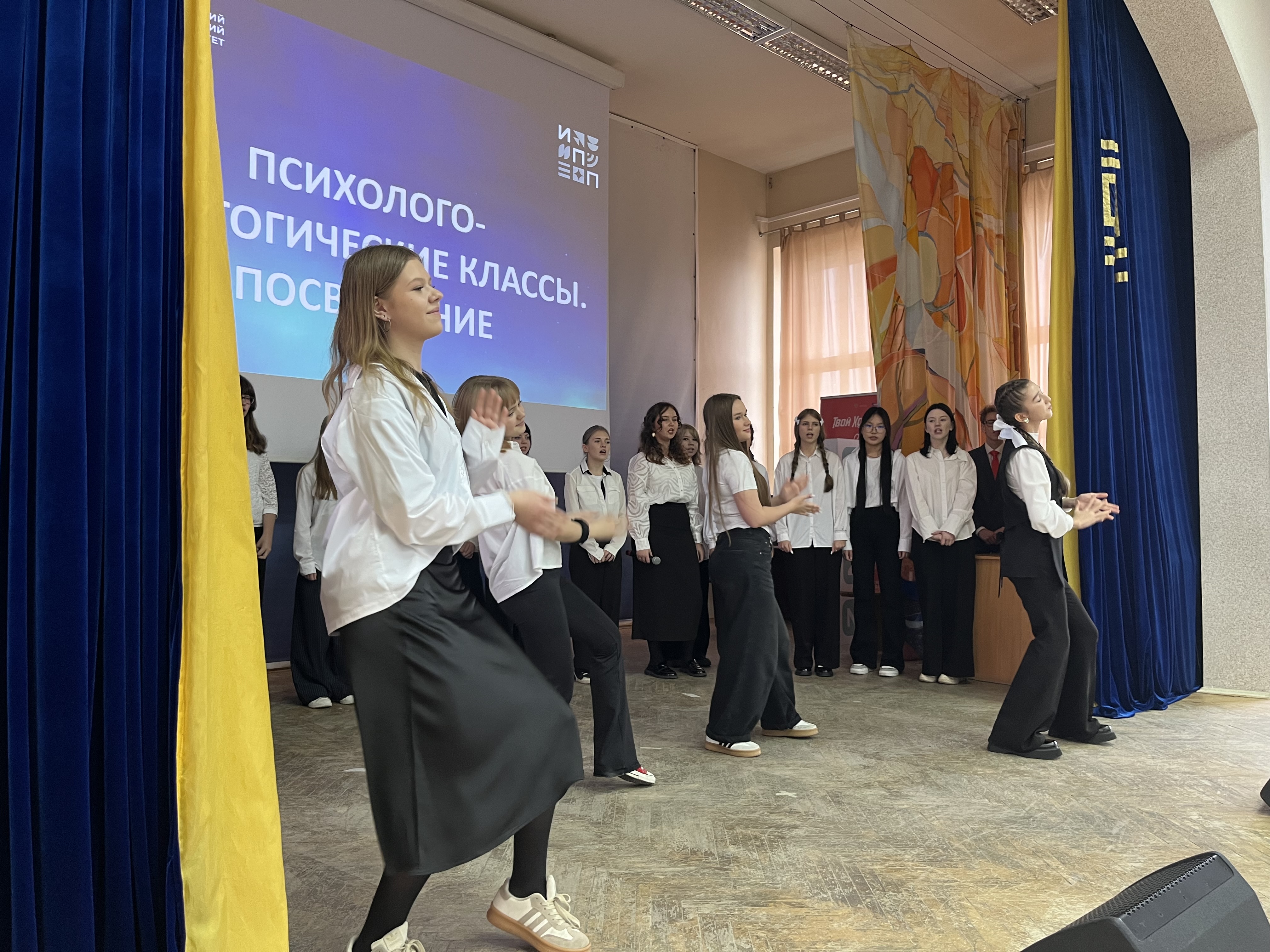 А дальше свои визитные карточки искрометно представили ученики десятых психолого-педагогических классов, которые начинают свой путь в профессию. Зал увидел яркие вокальные, хореографические номера и оригинальные видеоролики, позволившие лучше и ближе узнать друг друга.
