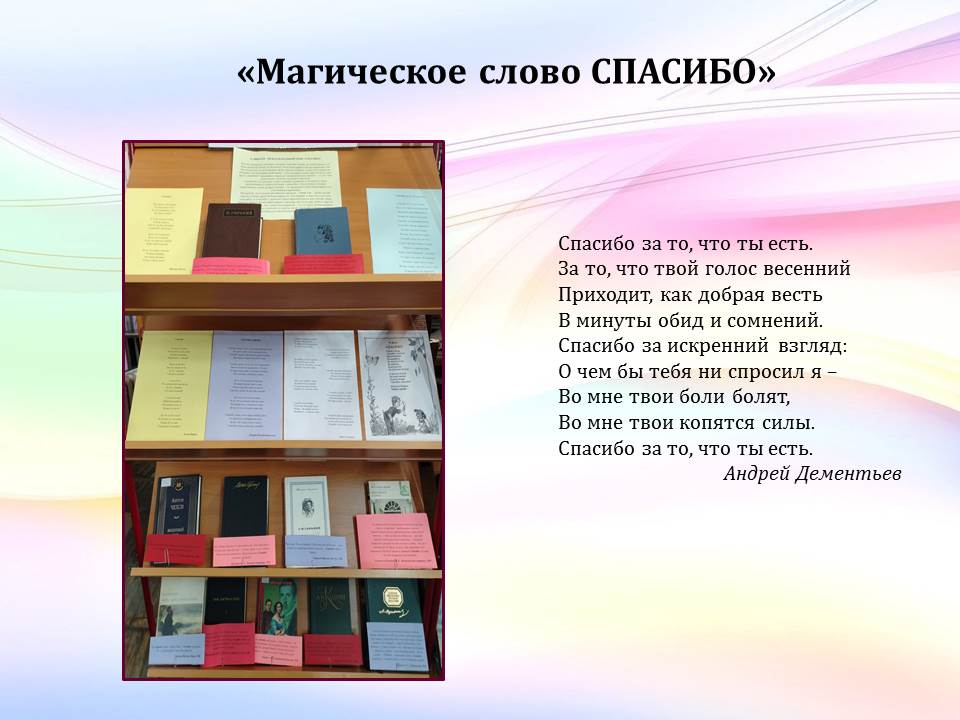 Книжная выставка «Магическое слово СПАСИБО»