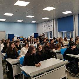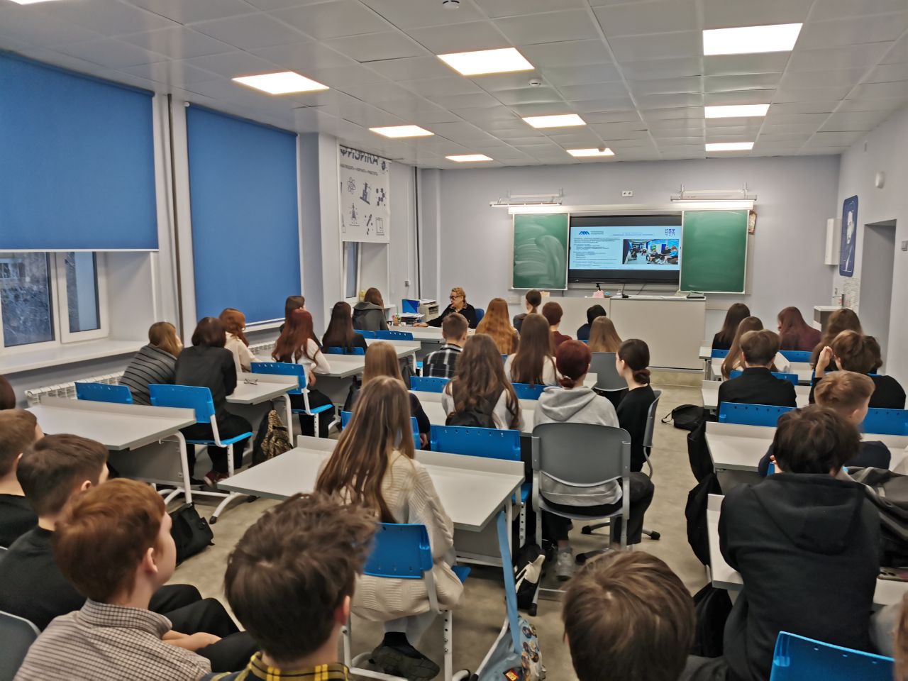 Студенты рассказали школьникам о структуре университета, институтах и кафедрах, а также о возможных стипендиях. Подробно представили свою выпускающую кафедру — экономики и управления. Перед школьниками сейчас стоит выбор — пойти после 9-го класса в колледж и потом продолжить образование в ВУЗе или завершить обучение до 11-го класса в школе и поступить в ВУЗ, поэтому вопросов к студентам было много.