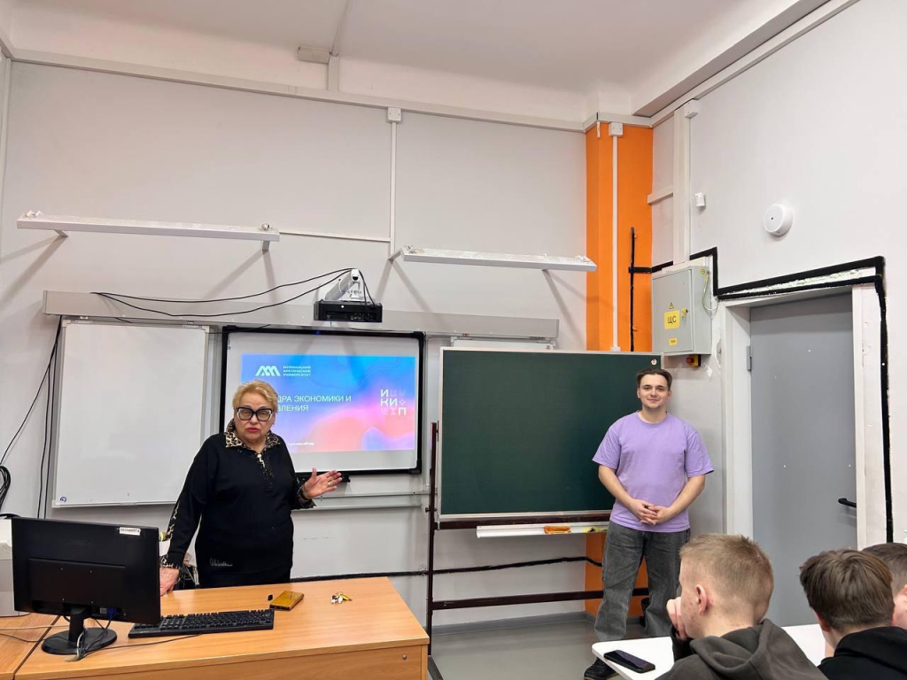 Преподаватель и студенты кафедры экономики и управления МАУ провели профориентационную работу для школьников 8-х и 9-х классов в гимназии № 3.