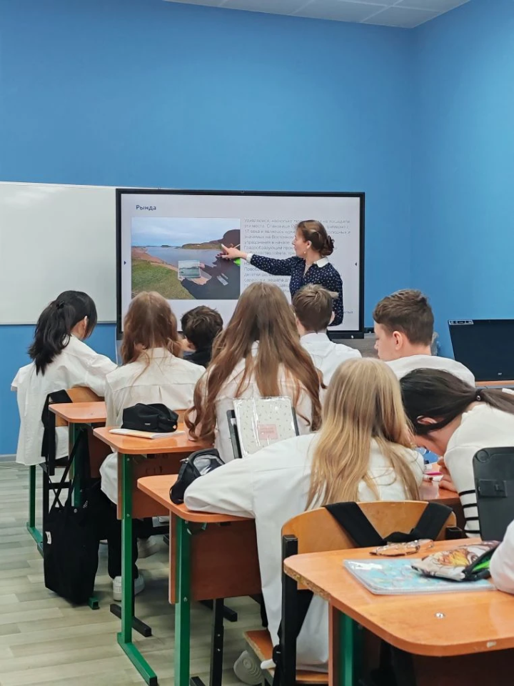 Вместе с обучающимися 7А и 6Б вспоминали историю освоения Мурманского берега, традиционные поморские лодки — карбасы, рассматривали фотографии рубежа