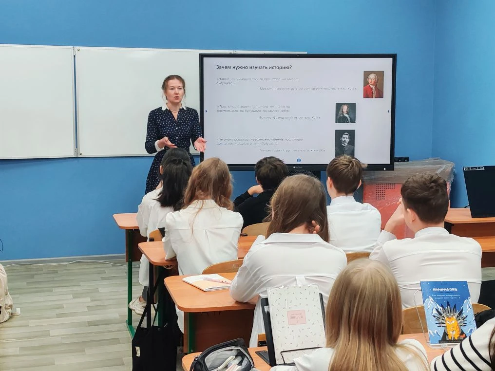 В завершение Алла Распопова рассказала о предстоящем празднике — Дне Российской науки и пригласила ребят на экскурсию в МАУ.