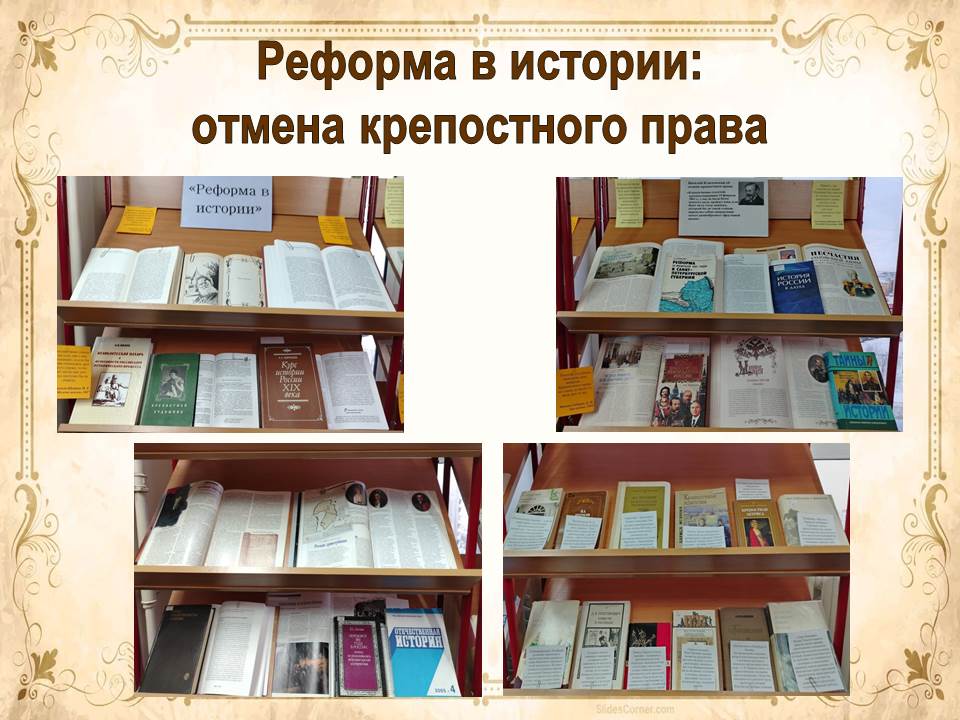 Книжная выставка «Реформа в истории»: (отмена крепостного права)