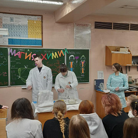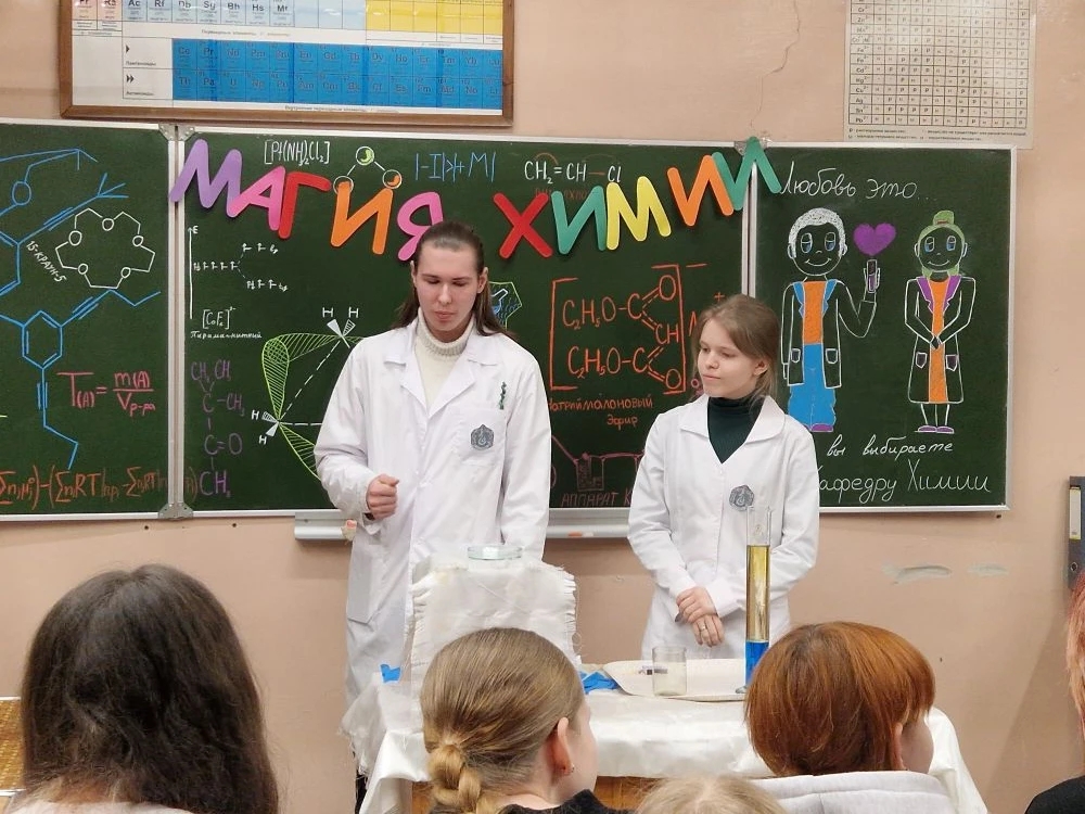 28 февраля 2026 года обучающиеся МБОУ г. Мурманска СОШ № 57 посетили кафедру химии Мурманского арктического университета (МАУ). В рамках профориентационной экскурсии школьники стали зрителями яркого шоу химических превращений «Магия из Хогвардса», где познакомились с опытами, демонстрирующими законы химии, увидели серию зрелищных экспериментов, объясняющих основы химических реакций, ответили на вопросы химической викторины и побывали в роли настоящих исследователей.