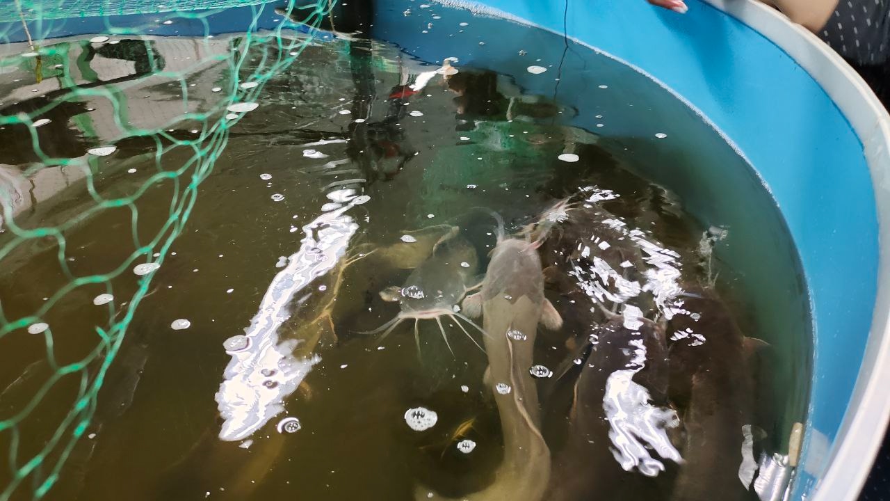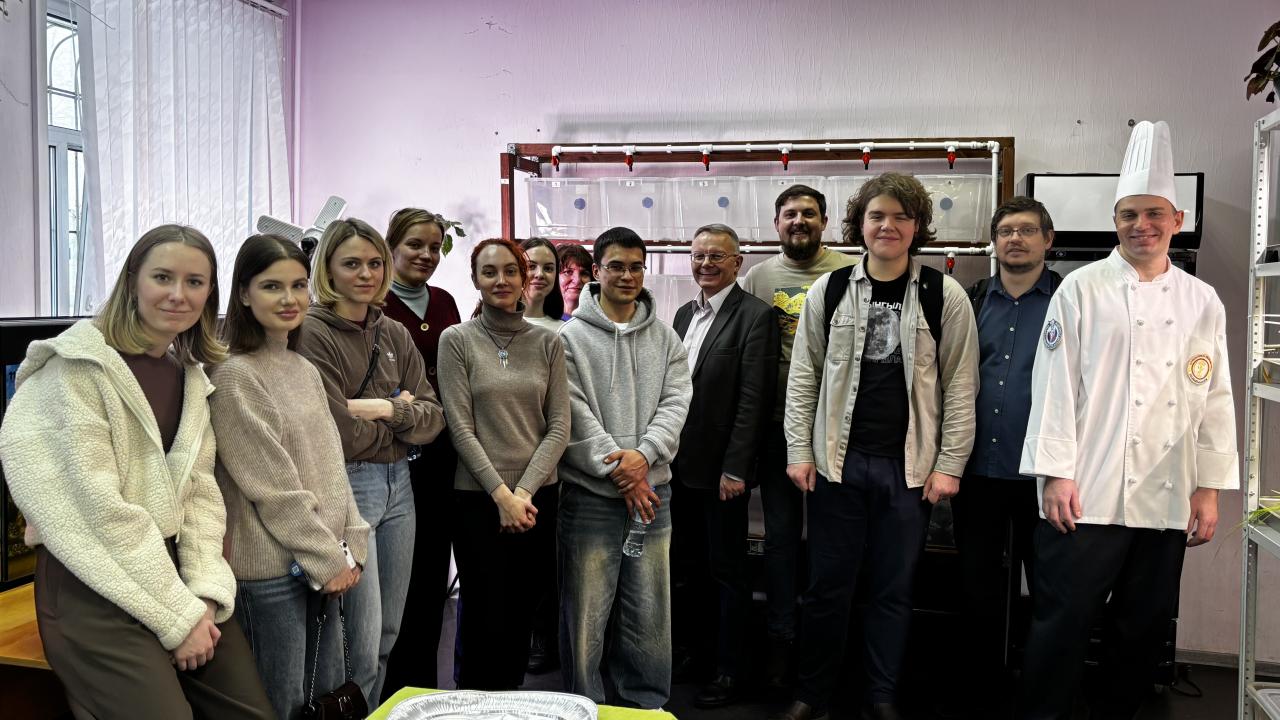 Пётр Кравец рассказал об особенностях выращивания, поведения и содержания данных видов. Студенты смогли поучаствовать в процессе кормления: сомы получили специальный сбалансированный корм, а раки — деликатес в виде размороженных креветок. Константин Говзбит предложил попробовать продукцию из выращенного в аквакомплексе МАУ сырья: уху и сочные гамбургеры из мяса клариевого сома, а также морскую соль собственного приготовления.