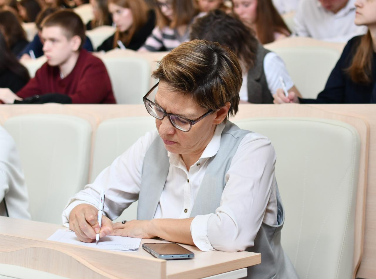 Мария Князева: «Знание языка, соблюдение его чистоты — это то, к чему должен стремиться каждый. Мы обязаны писать и изъясняться грамотно! Для меня как физика — это означает „уменьшать энтропию“ и создавать в мире порядок. Иначе мы будем двигаться к хаосу. И сегодня, написав диктант, вы тоже сократите общую энтропию нашей Вселенной для того, чтобы увеличить в ней порядок. Желаю всем удачи и хороших оценок!»