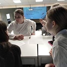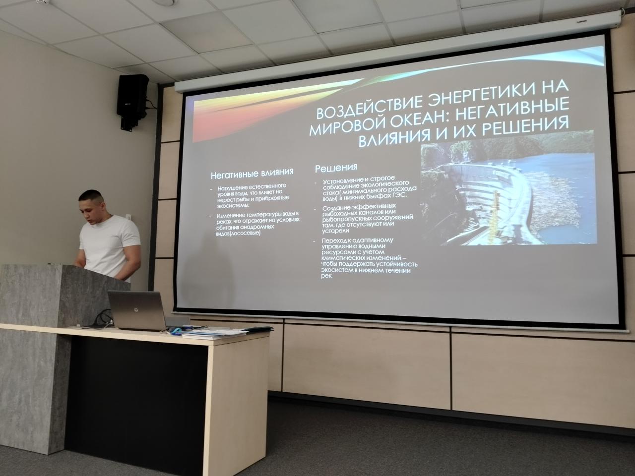 В этот же день для студентов МАУ и учащихся Мурманского политехнического лицея преподаватели кафедры строительства, энергетики и транспорта провели деловую игру «Поиск решений для снижения негативного воздействия на океан энергетики и транспорта нашего региона». В процессе игры участники разбирали кейсы, посвящённые влиянию транспорта и энергетики на водные экосистемы. Задания включали как вопросы для размышления, так и практические задачи, для решения которых требовались знания по математике и физике: рассчитать площадь нефтяного пятна или сколько угольной пыли попадает в атмосферу при разгрузке угля. Студенты МАУ выступили в качестве экспертов и совместно со школьниками активно обсуждали экологические проблемы региона, учились оценивать последствия использования различных энергетических ресурсов и транспортных технологий для морской среды. Игра оставила у всех участников яркие впечатления от совместной работы, а в завершение каждый получил памятный тематический подарок.