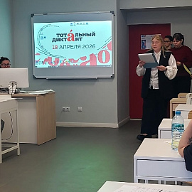 18 апреля 2026 года в целях реализации соглашения о партнерстве с Фондом поддержки языковой культуры, а также популяризации деятельности и формирования благоприятного имиджа Мурманского арктического университета на базе вуза при поддержке Фонда президентских грантов была проведена культурно-просветительская акция «Тотальный диктант» под руководством заведующего сектором профориентации и целевого обучения ОПЦ АР Анжелики Болозович.