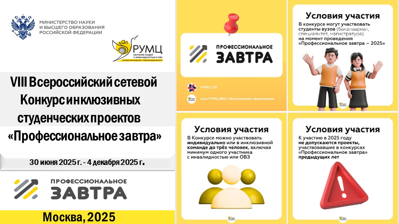Центр сопровождения обучающихся с ОВЗ и инвалидностью МАУ информирует, что с 30 июня открыта регистрация на участие в VIII Всероссийском сетевом конкурсе студенческих инклюзивных проектов «Профессиональное завтра».
