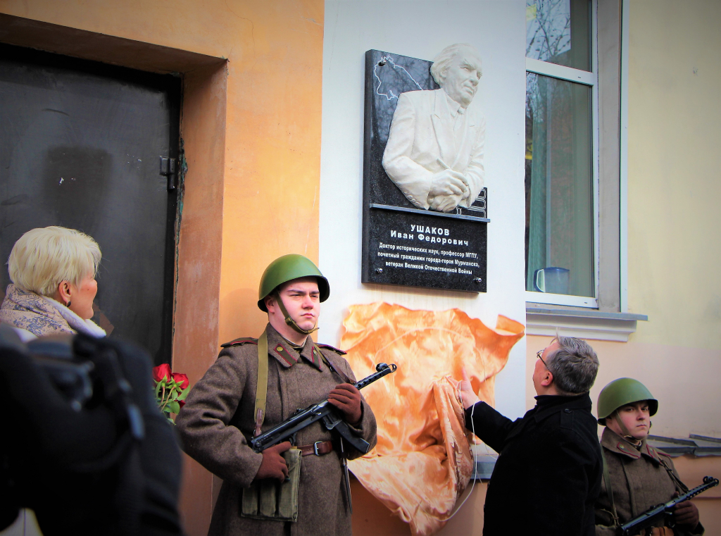 5 апреля на фасаде главного корпуса Мурманского арктического государственного университета была торжественно открыта мемориальная доска историку и краеведу Ивану Ушакову.