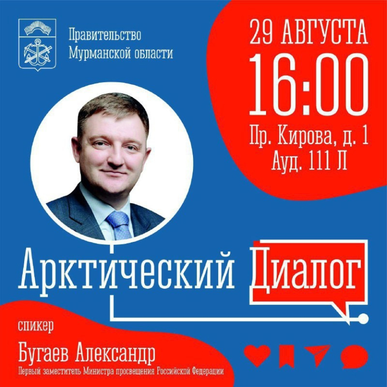 29 августа 2024 г. МАУ посетит Александр Бугаев — Первый заместитель Министра просвещения Российской Федерации. Он выступит спикером в новом сезоне «Арктического диалога»