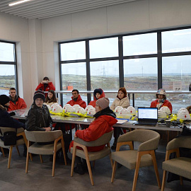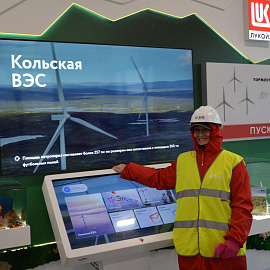 На Кольской ветряной электростанции студенты узнали, что высота одного ветряка равна трём девятиэтажным домам! Студенты даже побывали внутри «ноги» ветряка и с удивлением узнали, что Мурманская область занимает первое место по избыточному производству электроэнергии.