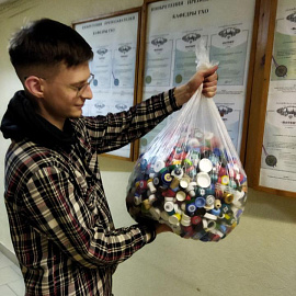 Большую помощь по сбору, упаковке и транспортировке крышечек оказали волонтеры акции: магистрант 2 курса, обучающийся по направлению подготовки