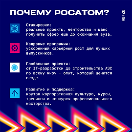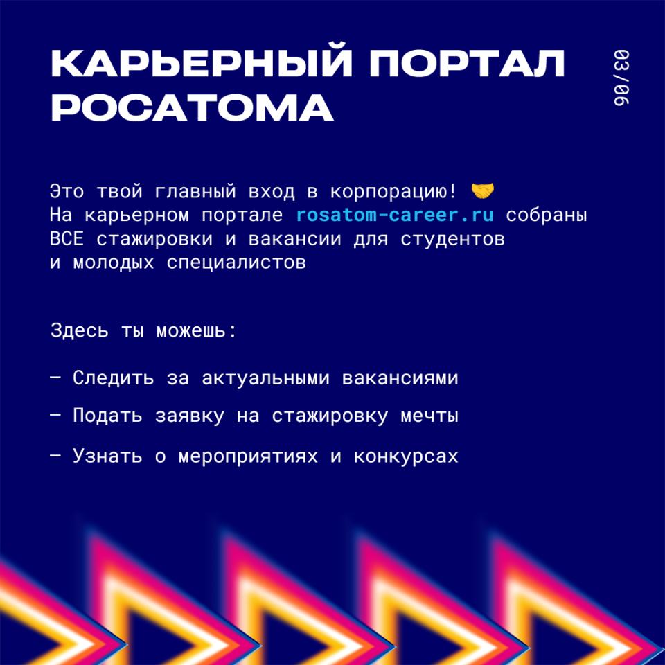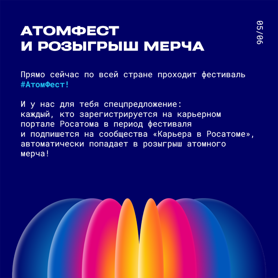 Мечтаешь о работе в одной из самых высокотехнологичных корпораций страны? Росатом — это не только атомные станции, но и IT, медицина, новые материалы, логистика и даже космос! И у молодежи здесь огромные перспективы. Смотри, с чего можно начать. Не упусти свой шанс! Регистрируйся на карьерном портале Росатома, принимай участие в фестивале #АтомФест и участвуй в розыгрыше — сделай первый шаг в карьере в атомной отрасли!