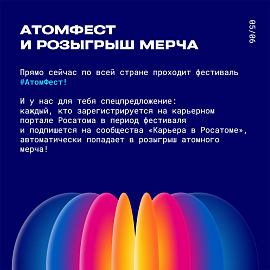 Присоединиться к событиям «АтомФеста» можно на карьерном портале Росатома >>