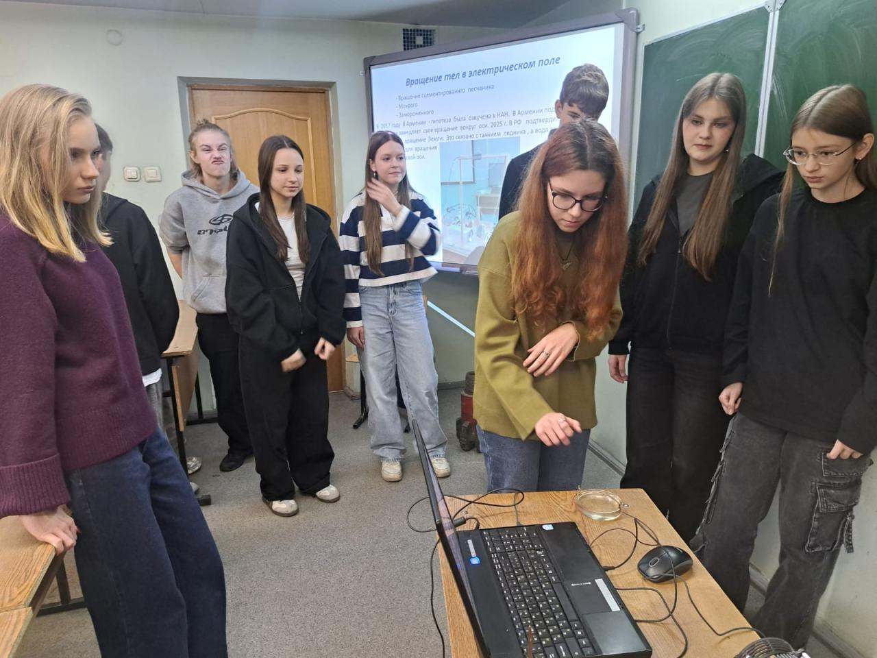 25 октября 2025 года на кафедре морского нефтегазового дела МАУ в рамках реализации плана профориентационной работы было проведена ознакомительная экскурсия и продемонстрированы занимательные физические опыты для обучающихся 10-х классов ГОБОУ «Средняя общеобразовательная школа № 289» города Заозерска (22 человека). Сопровождали школьников учитель физики Елена Владимировна Субботина и учитель математики Яна Леонидовна Медведева.