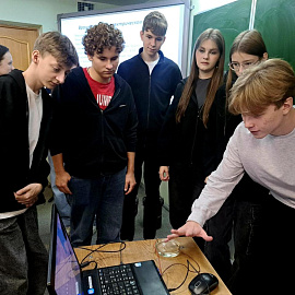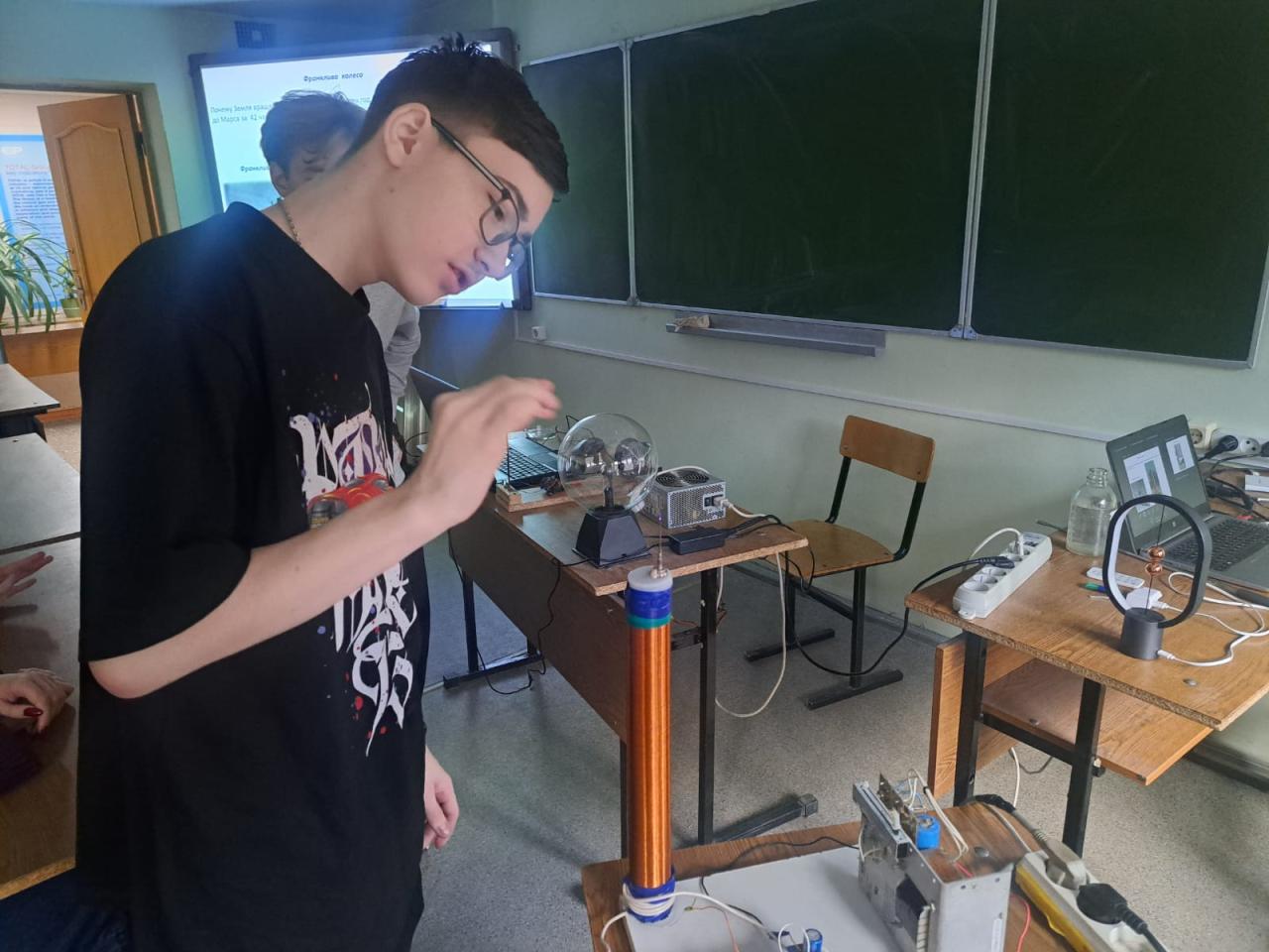 Показывал презентацию и физические опыты. Сами школьники принимали непосредственное участие в проведении физических опытов, фиксировании и обработки их результатов. Особенно им понравился опыт с водой, из 22 человек захотели трогать воду 19 школьников. Результаты измерений 8 опытов забрали с собой в школу. Опыты очень заинтересовали школьников.
