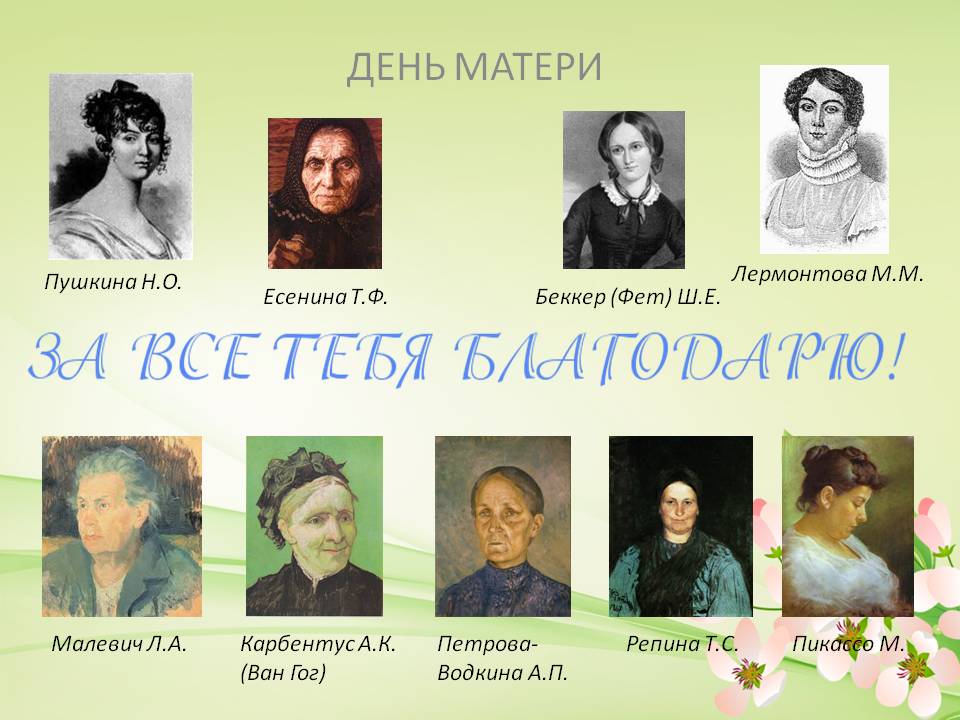 И, конечно, в этот день каждый человек может выразить доброе отношение своим матерям и сказать: за все тебя благодарю!