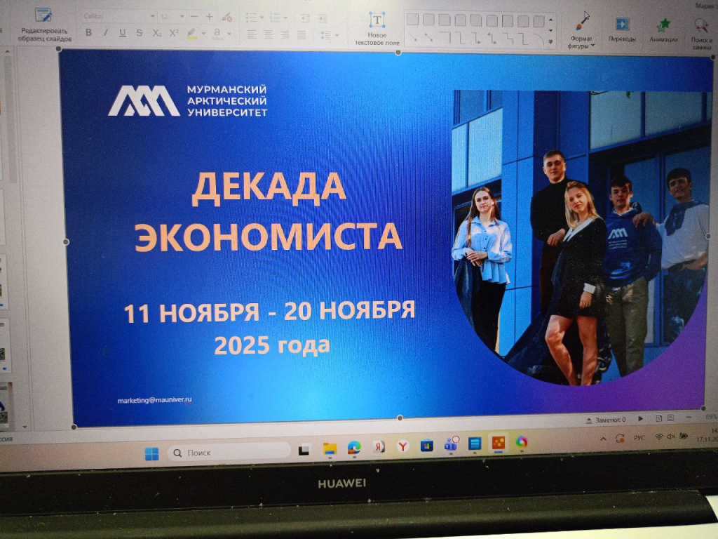 С 11 по 20 ноября 2025 г. обучающиеся МАУ по направлениям подготовки Экономика, Инноватика, Менеджмент приняли участие в региональном комплексном научном мероприятии «Декада экономиста» на площадке кафедры экономики и управления МАУ.