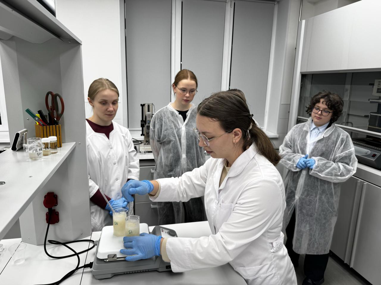 Под шефством аспирантов и научных сотрудников Влады Бордиян и Екатерины Боровинской школьники смогли почувствовать себя настоящими химиками-технологами: они своими руками создали крем для рук с северным характером, в состав которого вошли компоненты, полученные из бурых водорослей.