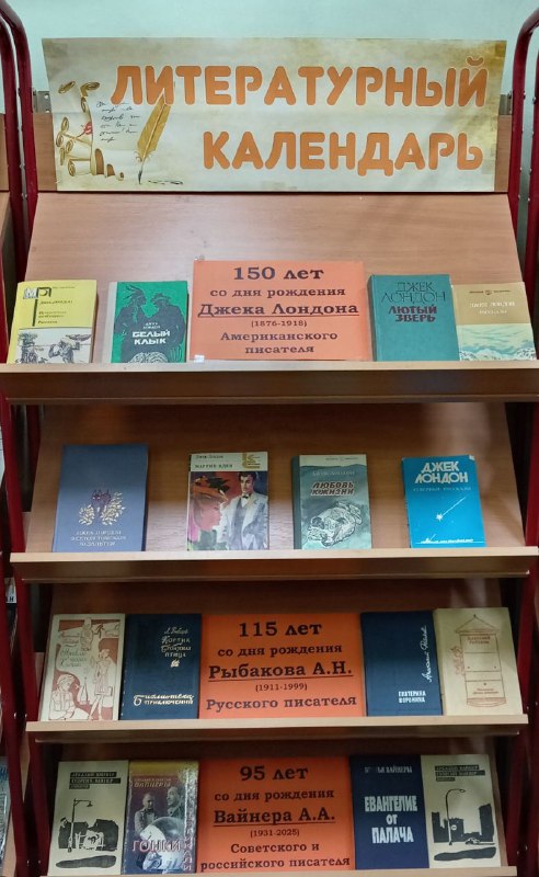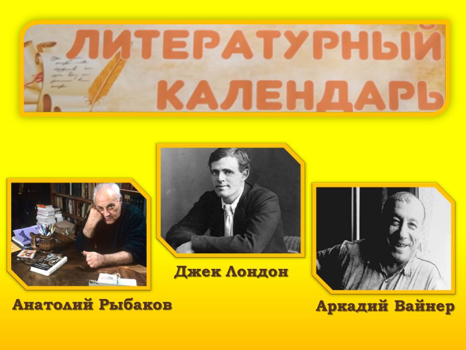 Обо всем этом и о многом другом из жизни и творческой биографии Джека Лондона, Аркадия Александровича Вайнера, Анатолия Наумовича Рыбакова можно узнать из материалов выставки «Литературный календарь», организованной Пунктом обслуживания ММРК (корпус «К», ауд. 108).