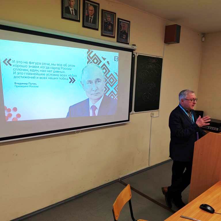 Для новых курсантов ВУЦ, приступивших к военной подготовке с 26 января 2026 г., проведена интерактивная патриотическая лекция Российского общества «Знание» на тему «Сила единства: история и будущее России». Она призвана помочь формированию у обучающихся понимания исторических предпосылок и значения Дня народного единства, ценности единства многонационального народа России для защиты суверенитета и достижения национальных целей развития.