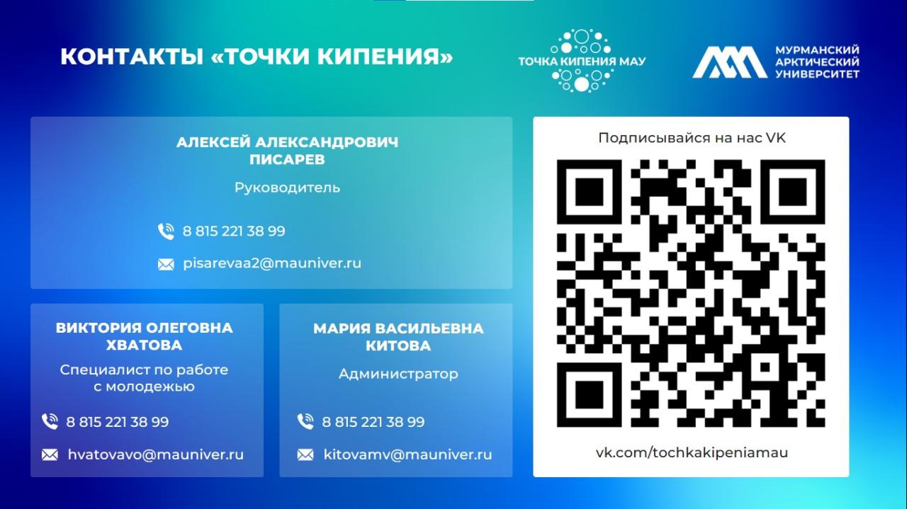 Все вопросы — в «Точку кипения»: ул. Капитана Егорова, д. 15, цокольный этаж, ауд. 013, телефон: 21−38−99