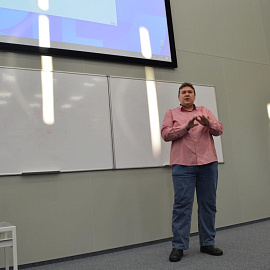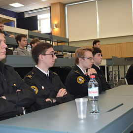 Выступил старший преподаватель кафедры СЭУиС Артем Петров. Он рассказал о новых возможностях развития студенческих научных проектов и стартапах благодаря поддержке университета, его технических возможностях и доступном программном обеспечении. Артем Леонидович пригласил студентов и курсантов вступить в студенческое конструкторское бюро «НордТех», где каждый может реализовать свой научный потенциал и даже стать грантополучателем.