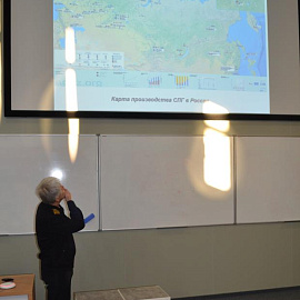 Открыли семинар студенты третьего курса направления подготовки Кораблестроение, океанотехника и системотехника объектов морской инфраструктуры, представив слушателям семинара доклад «Зеленые коридоры Арктики» о перспективах и направлениях развития Арктики.