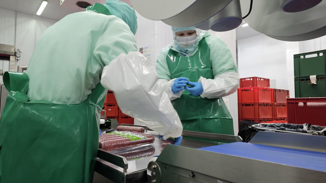 В формате производственной экскурсии студенты Естественно-технологического института Мурманского арктического университета, региональный координатор проекта «Выбирай свое» Ирина Просоленко, председатель общественного совета проекта Константин Котловский и участник программы «Герои Севера» Григорий Низовец посетили колбасный цех современного предприятия «Окраина», специализирующийся на выпуске сырокопчёной продукции.