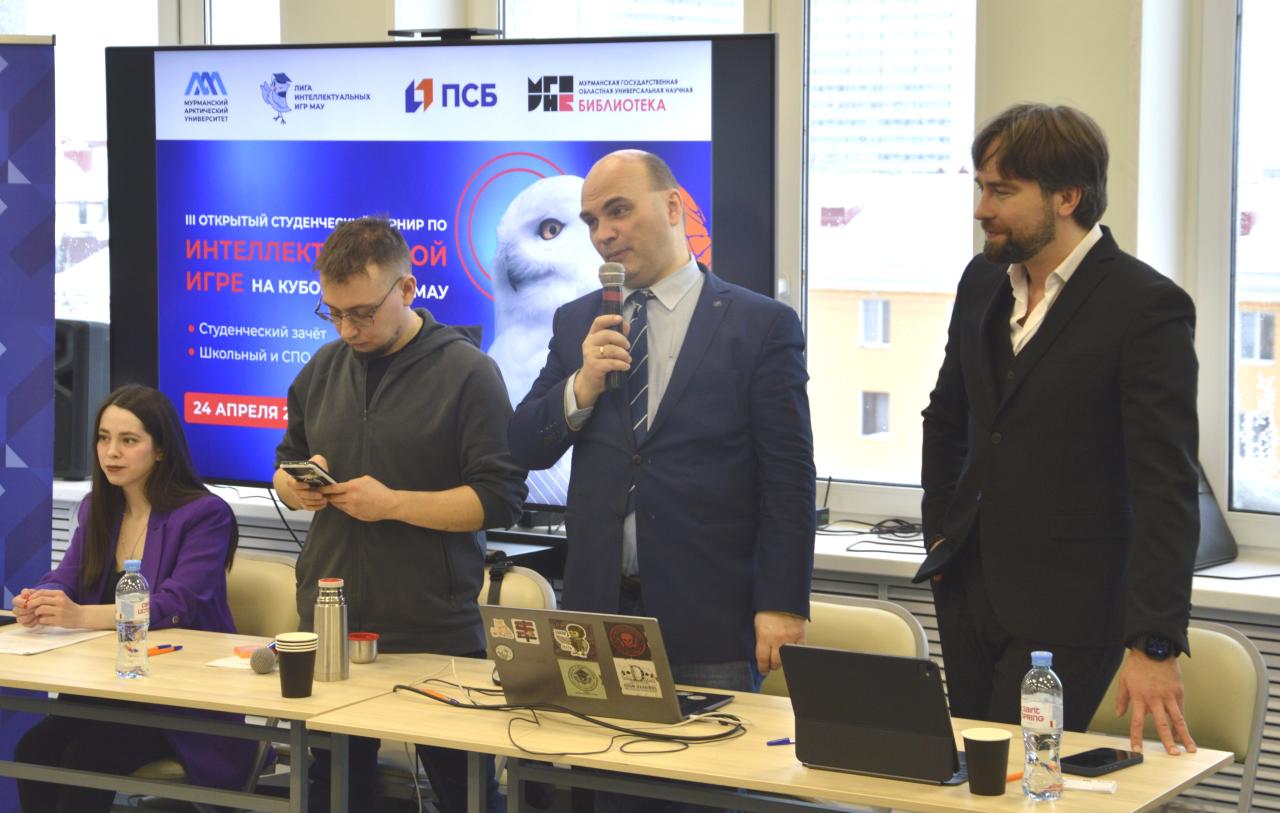 24 апреля 2026 г. в Мурманской государственной областной универсальной научной библиотеке собрались 16 команд образовательных организаций Мурманска и Мурманской области побороться заглавный трофей — кубок ректора МАУ. В интеллектуальной схватке сразились студенческие и школьные команды, а также команда работников МАУ.
