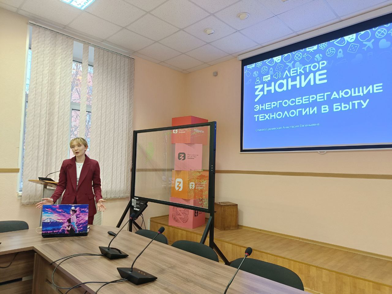 Новый сезон стал новым «лекторским» вызовом для нее. Тема выступления «Энергосберегающие технологии в быту» — многогранный и важный вопрос, от решения которого зависят не только семейные бюджеты, но и экологическая обстановка, повышение комфорта проживания. Тема интересна с разных позиций, поэтому лекция Анастасии Царевской носит практико-ориентированный характер.