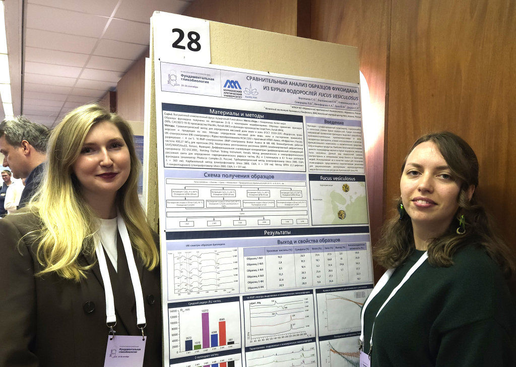 Екатерина Боровинская и Светлана Воропаева представили стендовый доклад на «Сравнительный анализ образцов фукоидана из бурых водорослей fucus vesiculosus». Работа была выполнена совместно с Казанским институтом биохимии и биофизики ФИЦ Казанский научный центр РАН (Казань).