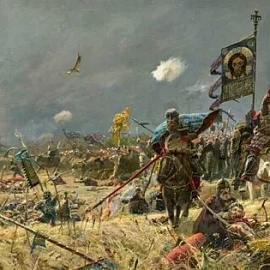 Куликовская битва — важнейшее событие в истории средневековой Руси, во многом определившее дальнейшую судьбу Российского государства. Битва на Куликовом поле послужила началом освобождения Руси от ига Золотой Орды. Страшные бедствия принесло монголо-татарское иго на русскую землю. Но во второй половине 14 века начался распад Золотой Орды, где фактическим правителем стал один из старших эмиров — Мамай. В то же время на Руси шел процесс образования сильного централизованного государства путем объединения русских земель под властью Московского княжества. Усиление Московского княжества встревожило Мамая. В 1378 году он послал на Русь сильное войско под командованием мурзы Бегича. Войско князя Московского Дмитрия Ивановича встретило ордынцев на реке Воже и наголову разбило их. Мамай, узнав о поражении Бегича, стал готовиться к большому походу на Русь. Он вступил в союз с великим князем литовским Ягайло и рязанским князем Олегом. Летом 1380 года Мамай начал поход. (8) 16 сентября 1380 года недалеко от места впадения реки Непрядва в Дон разгорелась ожесточенная битва. Лично Дмитрий Иванович сражался в первых рядах своих войск. Враг не выдержал неожиданного удара и стал отходить, а затем пустился в бегство. Войско Мамая было полностью разгромлено. Отряды Ягайло, узнав о победе русских, скорым маршем вернулись в Литву. Согласно летописям, битва на Куликовом поле произошла в день Рождества Пресвятой Богородицы. Князь Дмитрий возлагал большие надежды на помощь Богородицы и вознес ей свои молитвы. В храме Рождественского монастыря города Владимира, где покоилось тело князя Александра Невского, в ночь на Рождество (с 7 на 8 сентября по старому стилю) молились служители, прося Александра оказать помощь Дмитрию. И тут произошло чудо — возле гроба князя зажглись свечи, князь Александр поднялся над гробом, посмотрел на монахов и сделался невидимым. Матерь Божия не отвергла молитв православных христиан и поддержала их дух и силы в нелегком бою. С тех лет Русская Православная Церковь в день Рождества Пресвятой Богородицы празднует и победу над Мамаем. Куликовская битва имела большое историческое значение в борьбе русского и других народов с монголо-татарским гнетом. Важным следствием Куликовской битвы было усиление роли Москвы в образовании Русского государства.