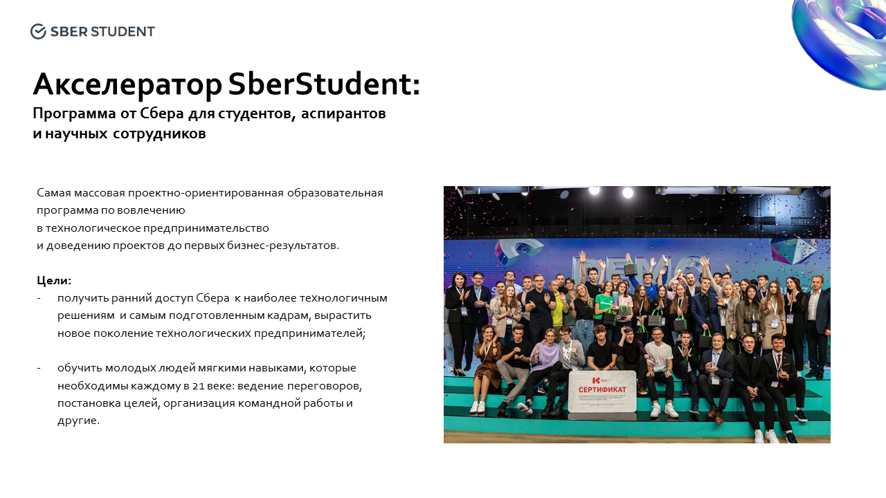 SberStudent — акселератор технологических стартапов для студентов, аспирантов и научных сотрудников.