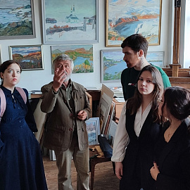 Недавно команда студентов, в которую вошли Асташкина Дарья, Катенкария Олег, Ольшанская Мария, Алферова Виктория и Марук Николай, получила уникальную возможность посетить творческое пространство Виталия Николаевича Бубенцова — заслуженного художника России, чьи работы вдохновляют многих! Эта экскурсия стала настоящим открытием: они не только увидели его потрясающие картины, но и погрузились в атмосферу творчества и вдохновения.