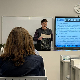 Они провели информативную лекцию на тему: «Современные формы терроризма и экстремизма». На занятии были рассмотрены особенности этих опасных явлений в современных реалиях, их проявления в цифровом пространстве и потенциальные угрозы.