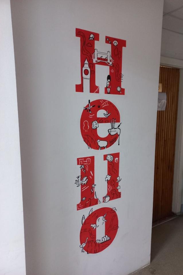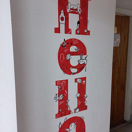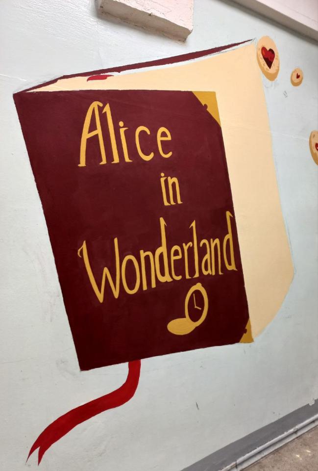 Сейчас активно ведется работа — можно наблюдать нанесенные эскизы героев сказки «Алиса в стране чудес», изображения Уильяма Шекспира и группы «The Beatles». Радостно видеть, как преображаются однотонные стены в яркие и познавательные рисунки, погружающие в атмосферу и историю англоязычной культуры. Мы уверены, что в обновленном пространстве — результате инициативы и желания студентов сделать университет лучше, будет комфортно находиться и работать!