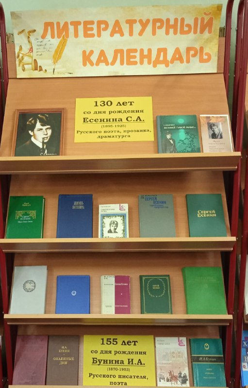 Обо всем этом и о многом другом из жизни и творческой биографии Сергея Александровича Есенина и Ивана Алексеевича Бунина можно узнать из материалов выставки «Литературный календарь», организованной Пунктом обслуживания ММРК (корпус «К», ауд. 108).