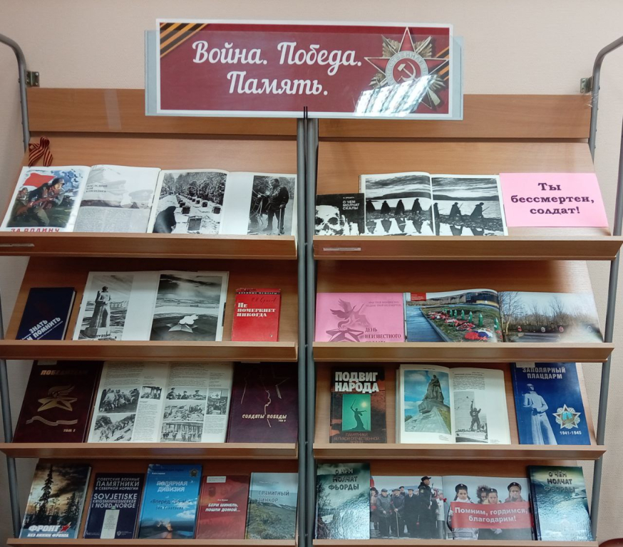 На выставке «Ты, бессмертен солдат!», организованной Пунктом обслуживания ММРК (корпус «Ш», ауд. 210), на которой представлены книжные издания которые, рассказывают о героизме и мужестве советских воинов, проявленных в жестоких схватках с врагом в период с 1941 по 1945 гг.
