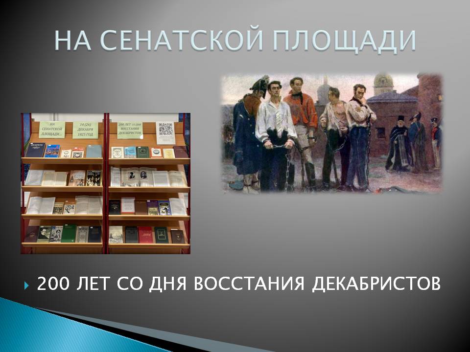 Читальный зал библиотеки МАУ (205В) предлагает вниманию читателей книжную выставку «На сенатской площади».
